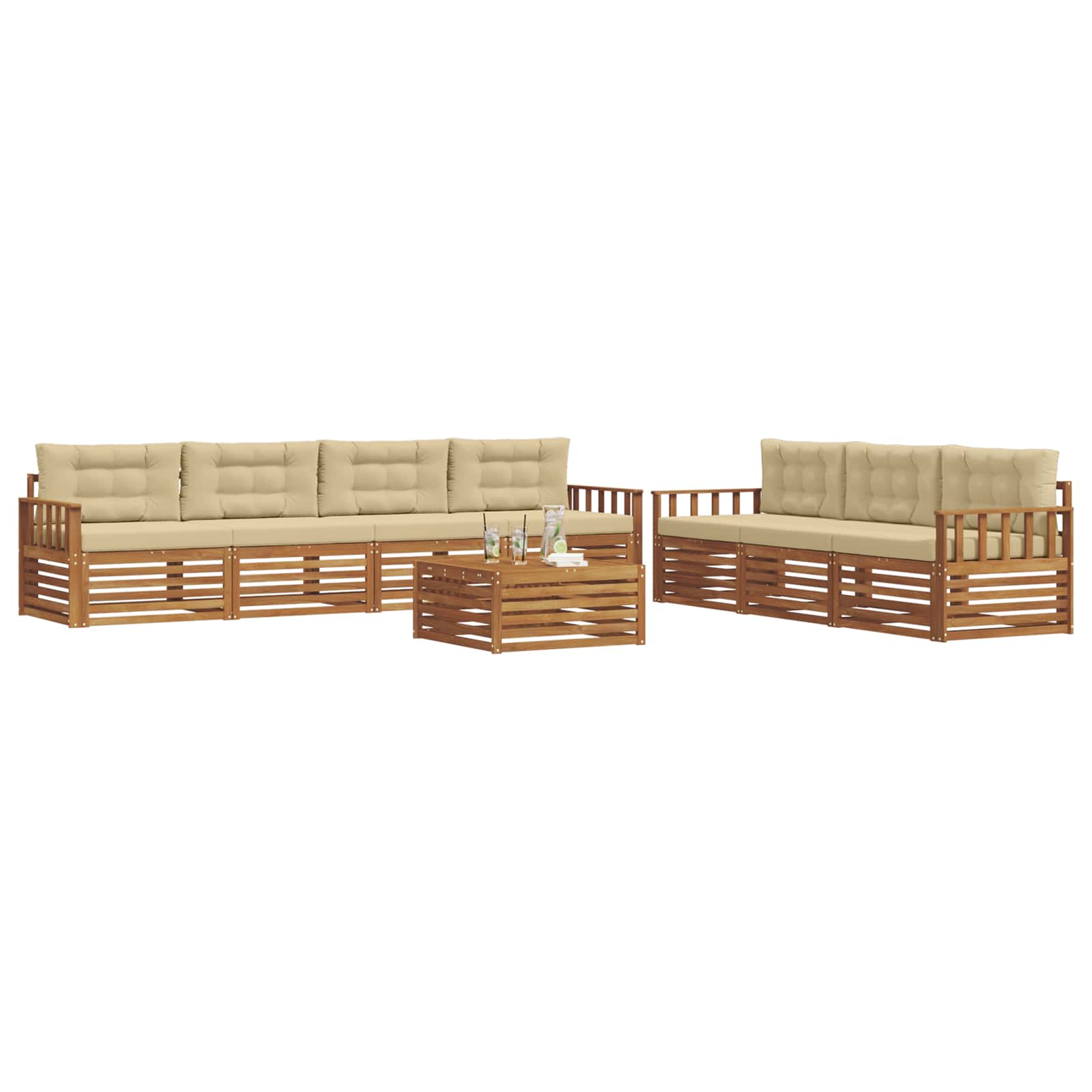 Set di divani da esterno con cuscino 8 pcs Naturale e Beige 3373133