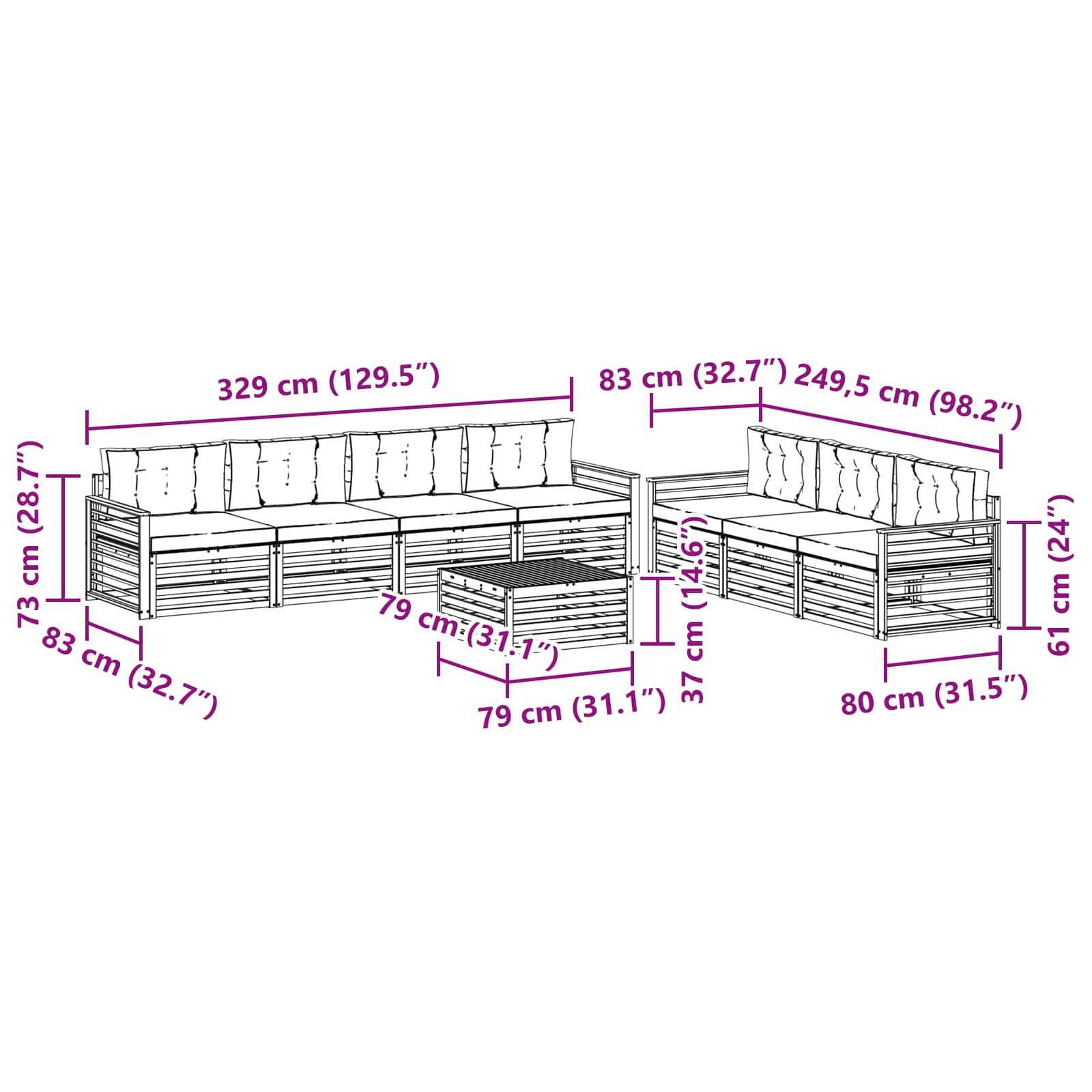 - 7 x Cuscino del Sedile: 80 x 80 x 8 cm (LxWxH)