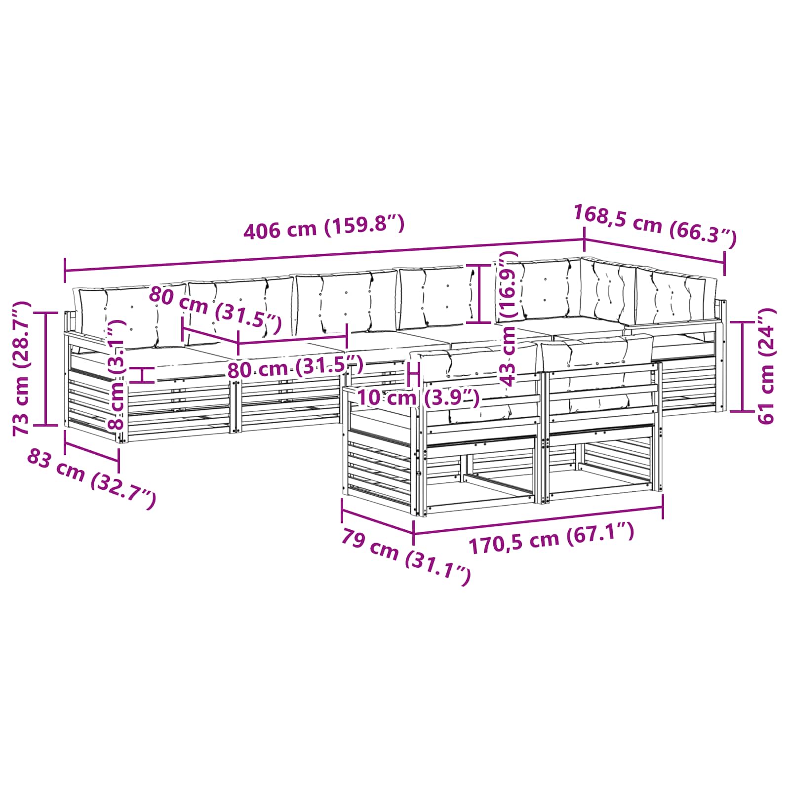 - 8 x Cuscino del Sedile: 80 x 80 x 8 cm (LxPxA)