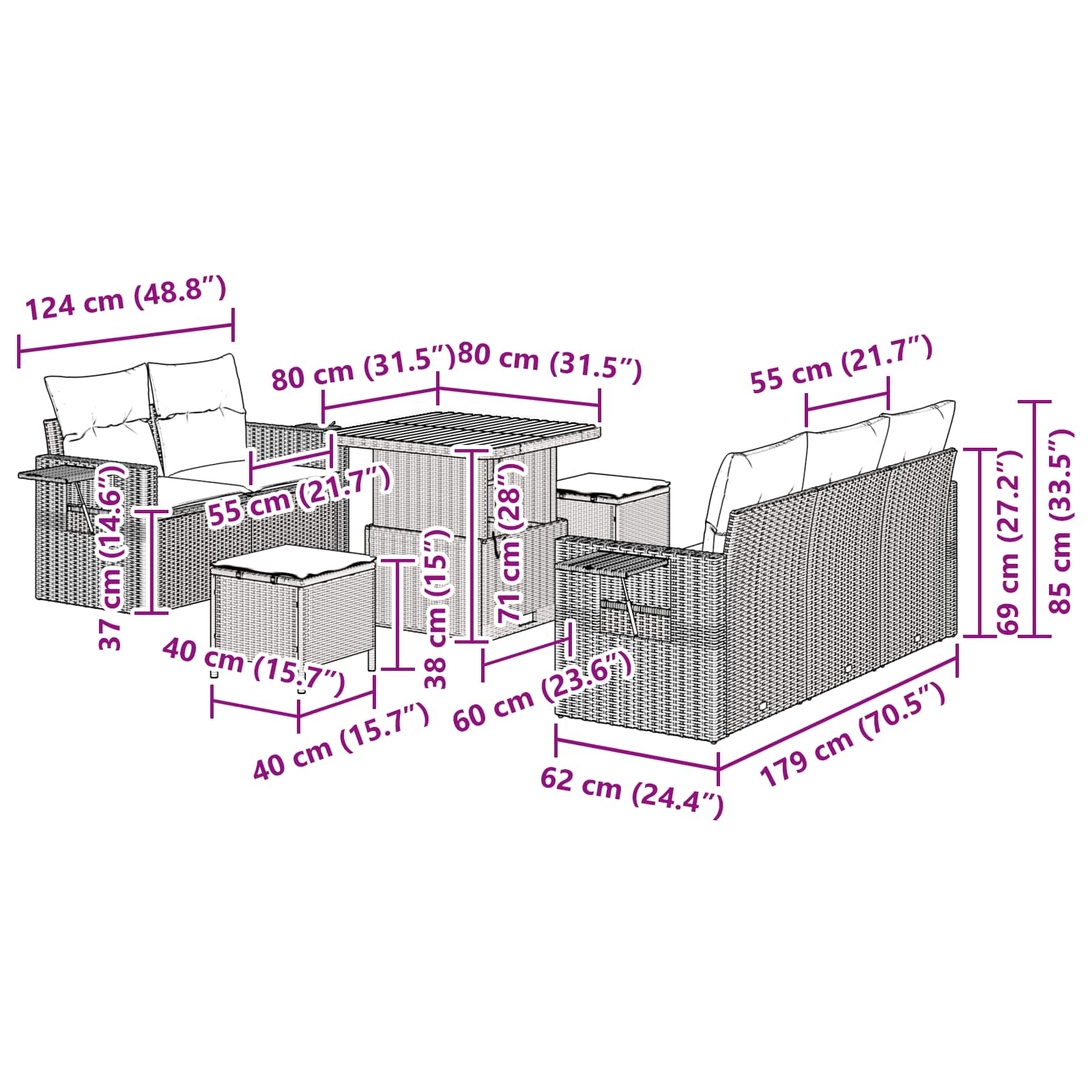 Set Divano da Giardino con cuscino 8 pcs Nero polyrattan 3361684