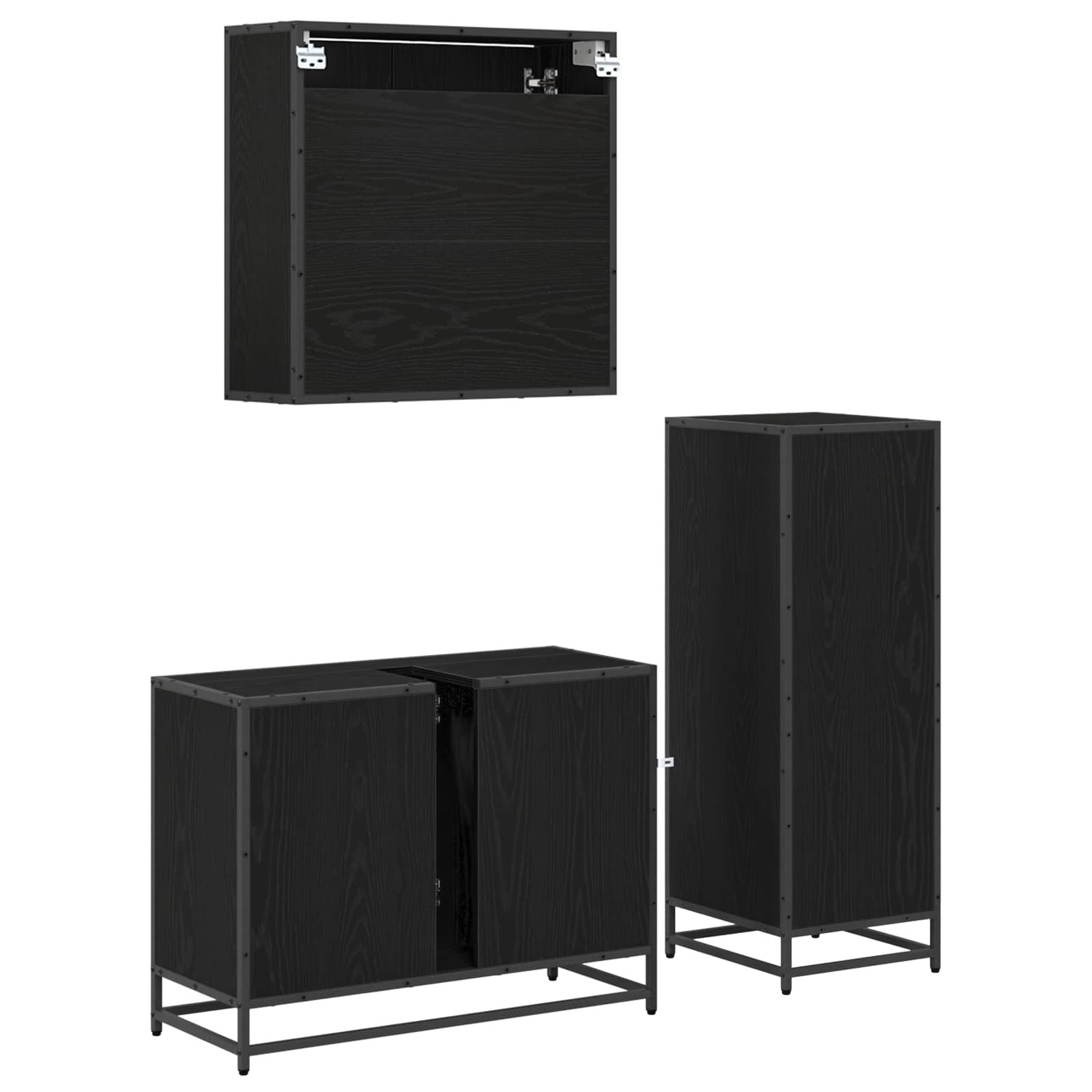 Set di mobili per il bagno 3 pcs Rovere Nero Legno multistrato 3402565