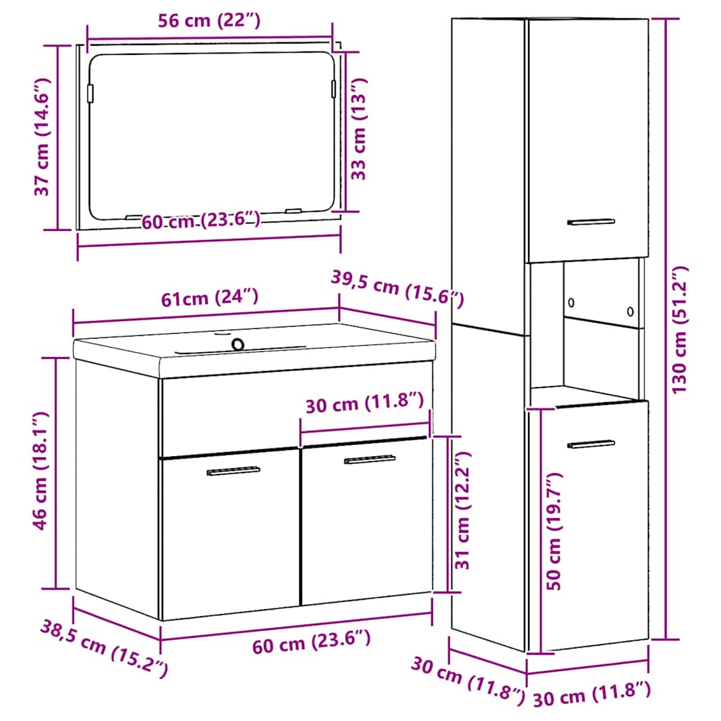 Set di mobili per il bagno 4 pcs Marrone Legno multistrato 3332573