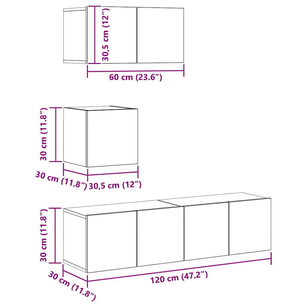 Set di Mobili Porta TV 4 pz Rovere Fumo in Legno Multistrato 3120317
