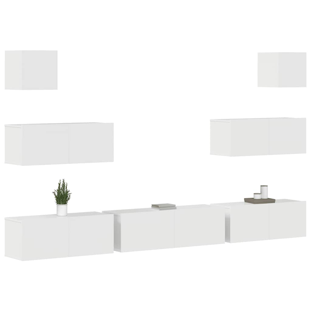 Set di Mobili Porta TV 7 pz Bianco Lucido in Legno Multistrato 3114546