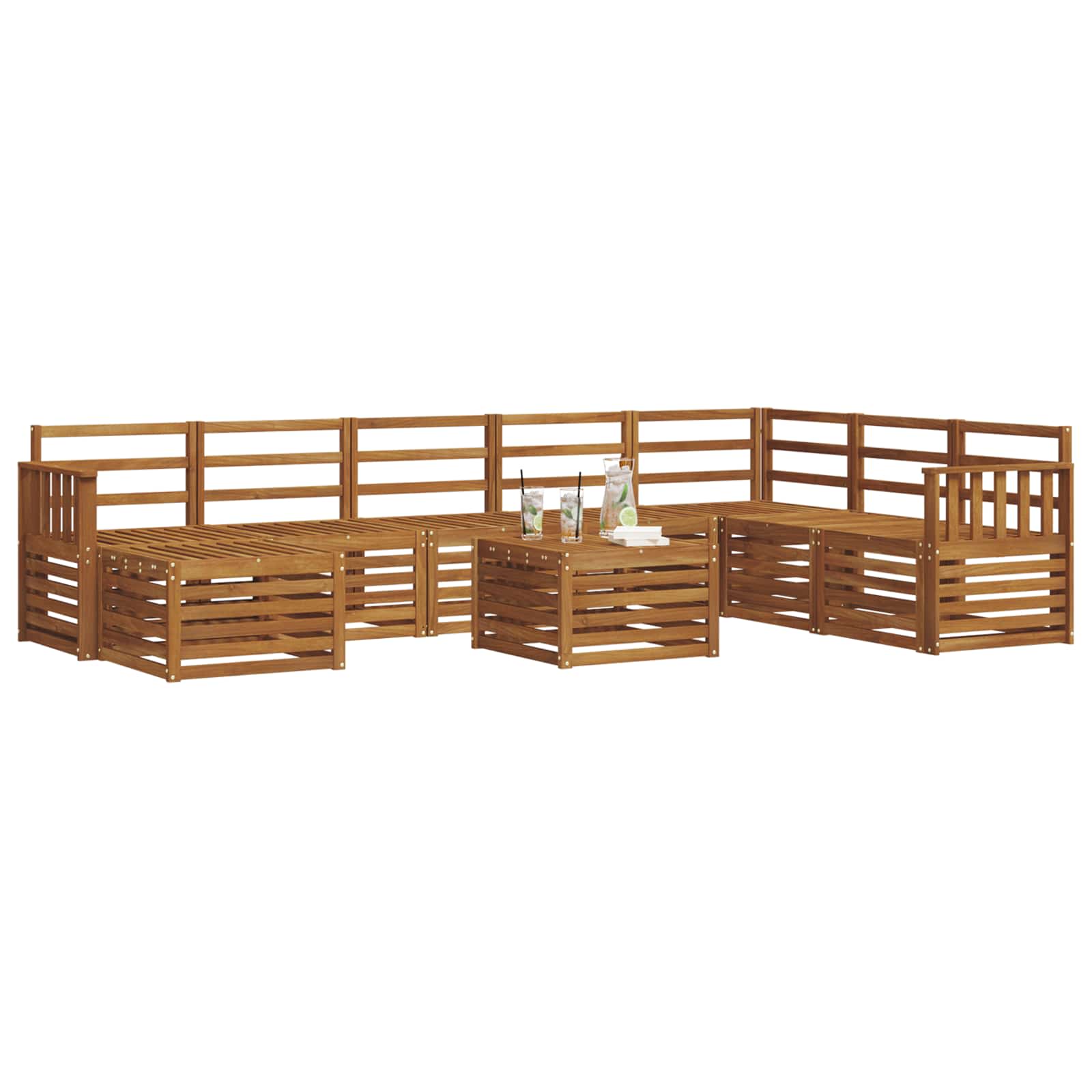 Questo set di mobili da esterno abbina stile e funzionalità, creando un centro d'attrazione per qualsiasi giardino o terrazza. Il design moderno, con linee pulite e semplici dettagli, aggiunge eleganza per momenti di relax e socializzazione all'aperto. Realizzato in legno massello di acacia, è super resistente e bello da vedere, così è perfetto per chi cerca praticità e bellezza nei mobili all'aperto.