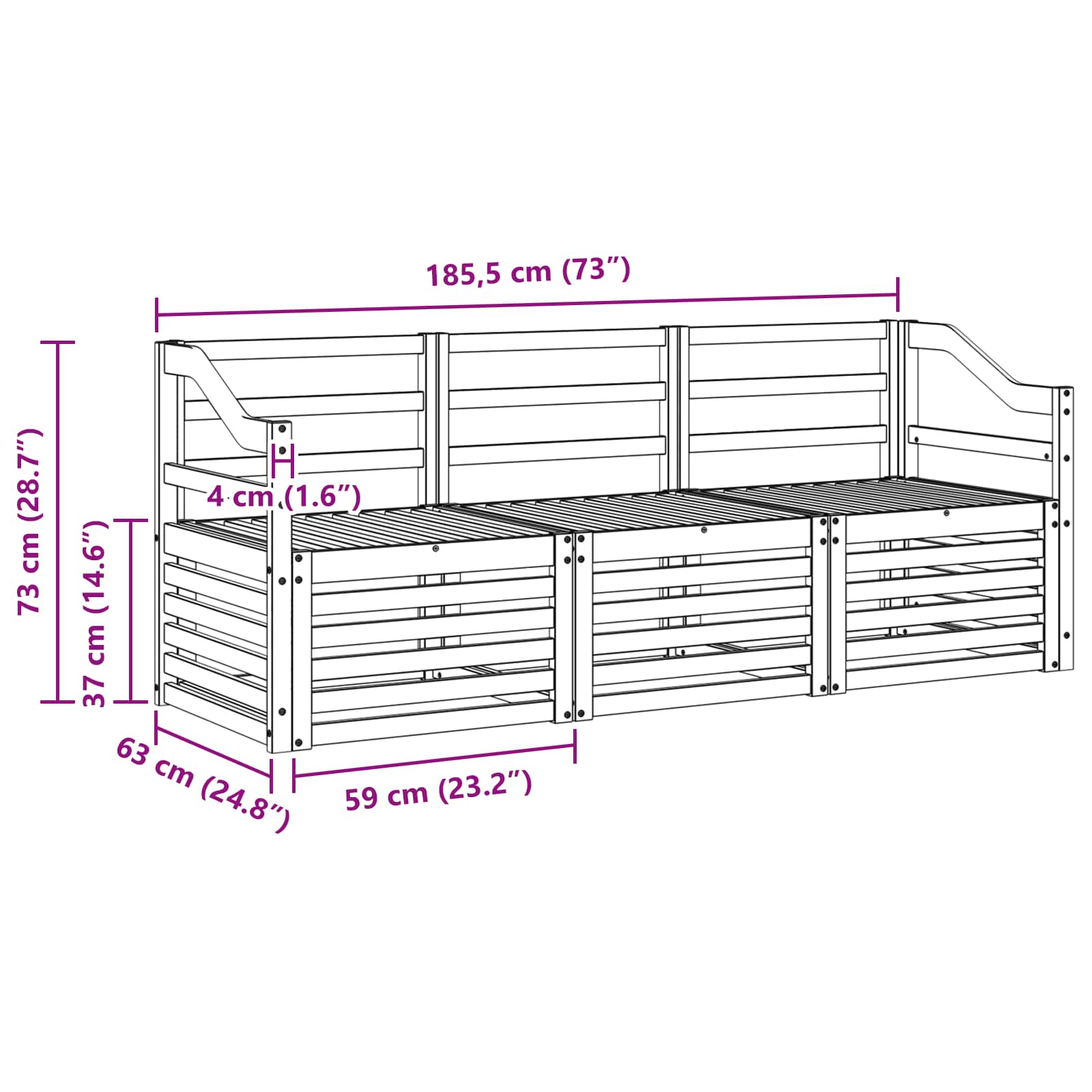 - Dimensioni complessive: 185,5 x 63 x 73 cm (L x P x A)