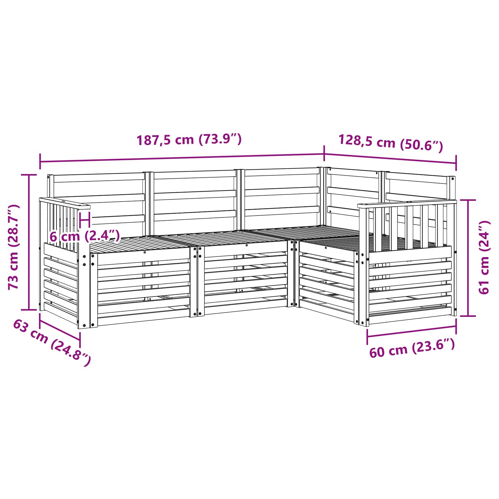 - 1 x Divano angolare: 63 x 63 x 73 cm (LxPxA)