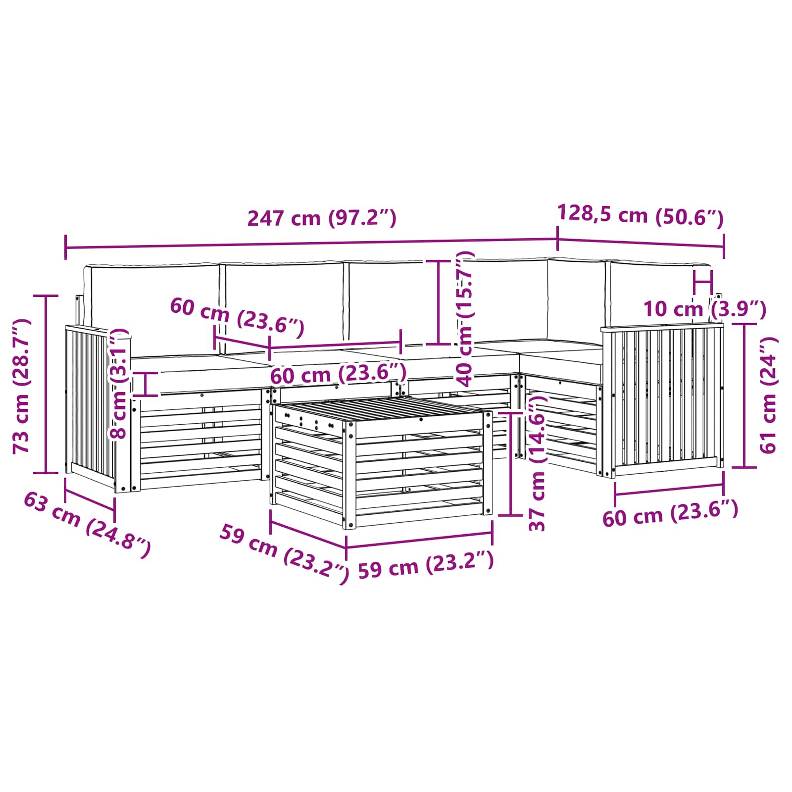- 5 x Cuscino per seduta: 60 x 60 x 8 cm (L x P x A)