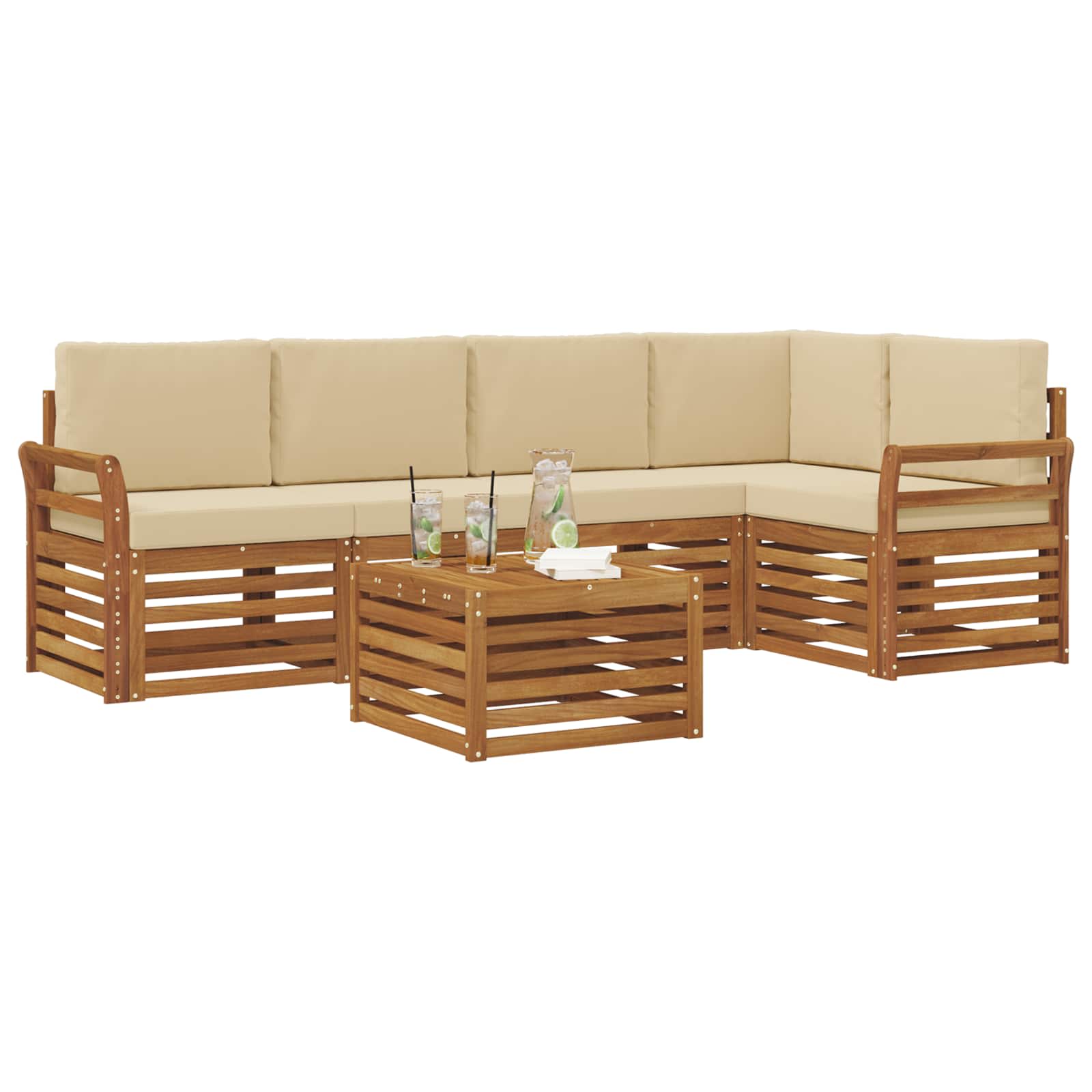 Il set di mobili da esterno unisce stile e praticità, creando un punto focale sorprendente per il tuo giardino o terrazza. Il design moderno, con linee semplici e dettagli minimi, aggiunge eleganza, perfetta per il relax e le riunioni all'aperto. Fatto interamente in legno massello di acacia, questo set è durevole e visivamente attraente, la scelta giusta per chi cerca praticità e design raffinato nei mobili esterni.