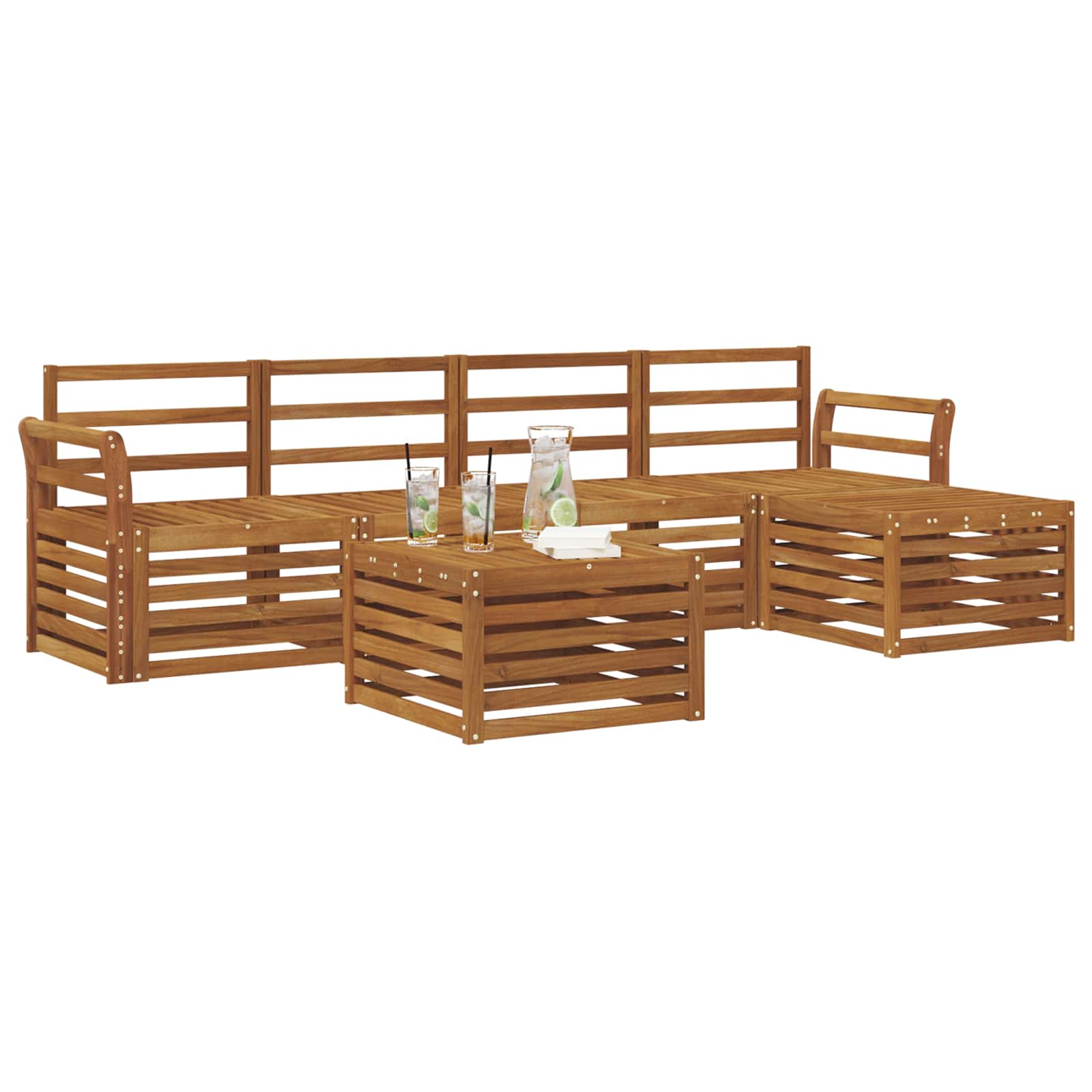 Questo set di mobili per esterni unisce stile e praticità, diventando il punto focale del tuo giardino o terrazza. Il design moderno, con linee pulite e dettagli minimalisti, porta eleganza e crea un'atmosfera perfetta per rilassarsi e socializzare all'aperto. È realizzato in legno massello di acacia, quindi è durevole e mantiene un aspetto fantastico nel tempo, ideale per chi cerca sia funzionalità sia design ricercato.