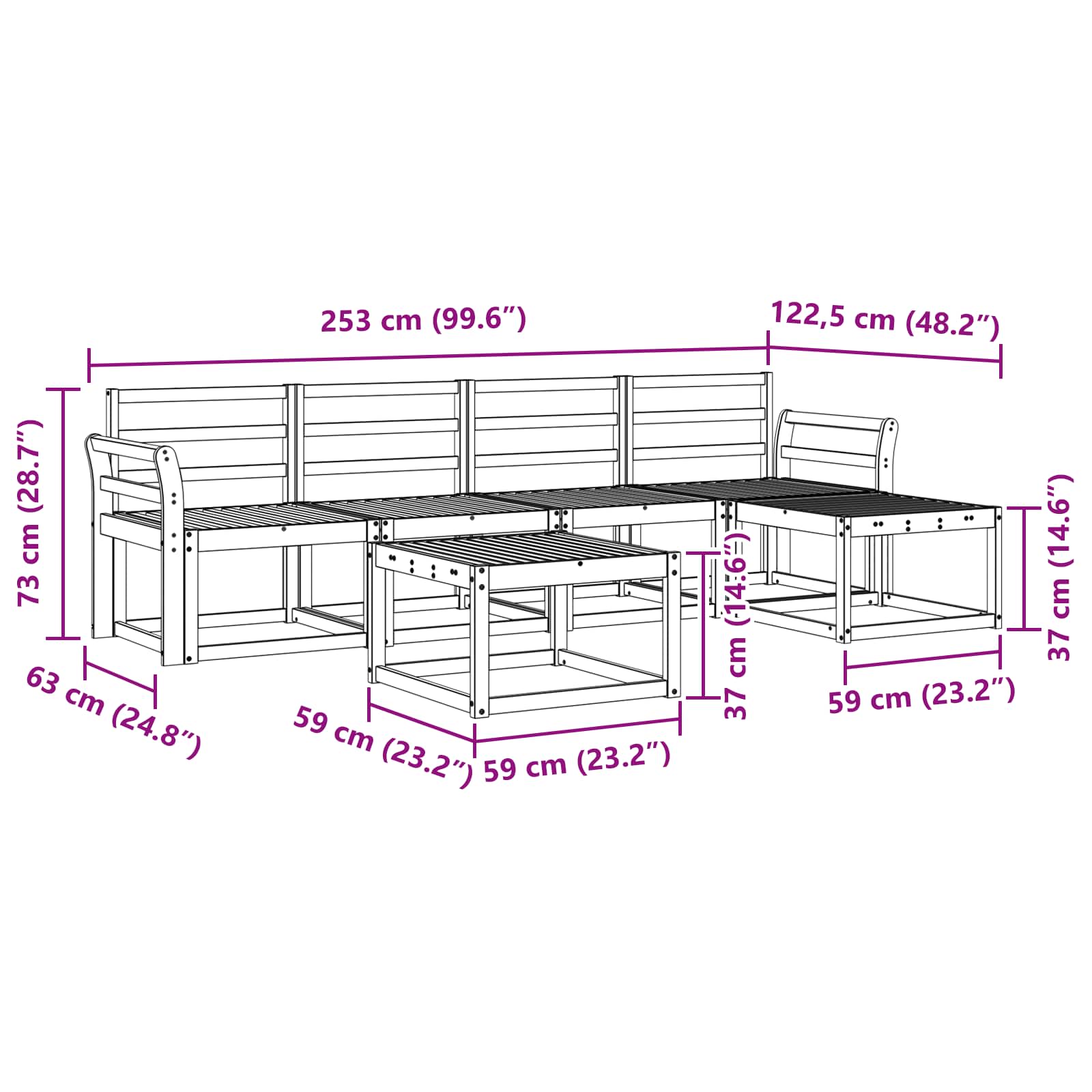 - 1 x Pouf: 59 x 59 x 37 cm (L x P x A)