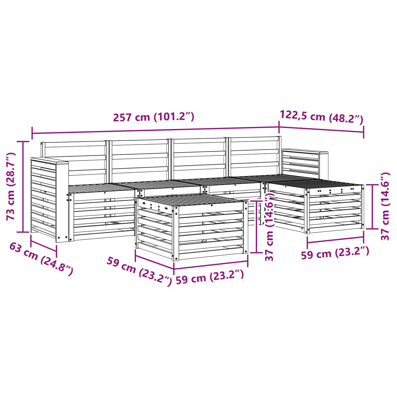 - Dimensioni complessive: 59 x 59 x 37 cm (L x P x A)
