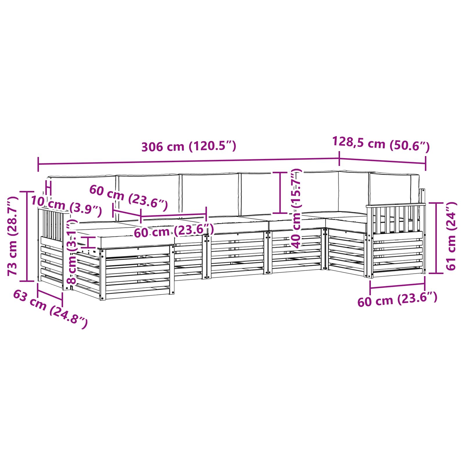 - 7 x Cuscino per seduta: 60 x 60 x 8 cm (L x P x A)