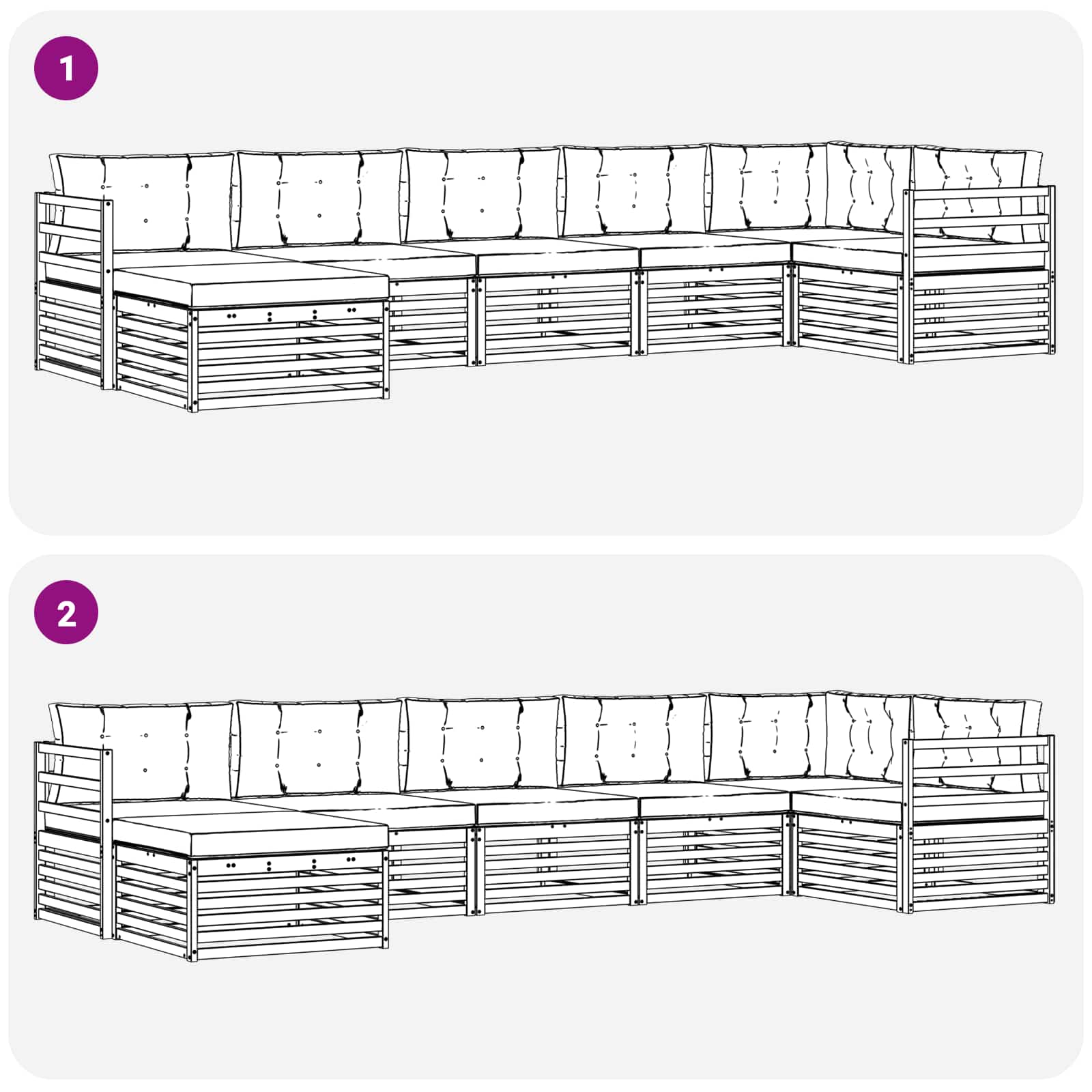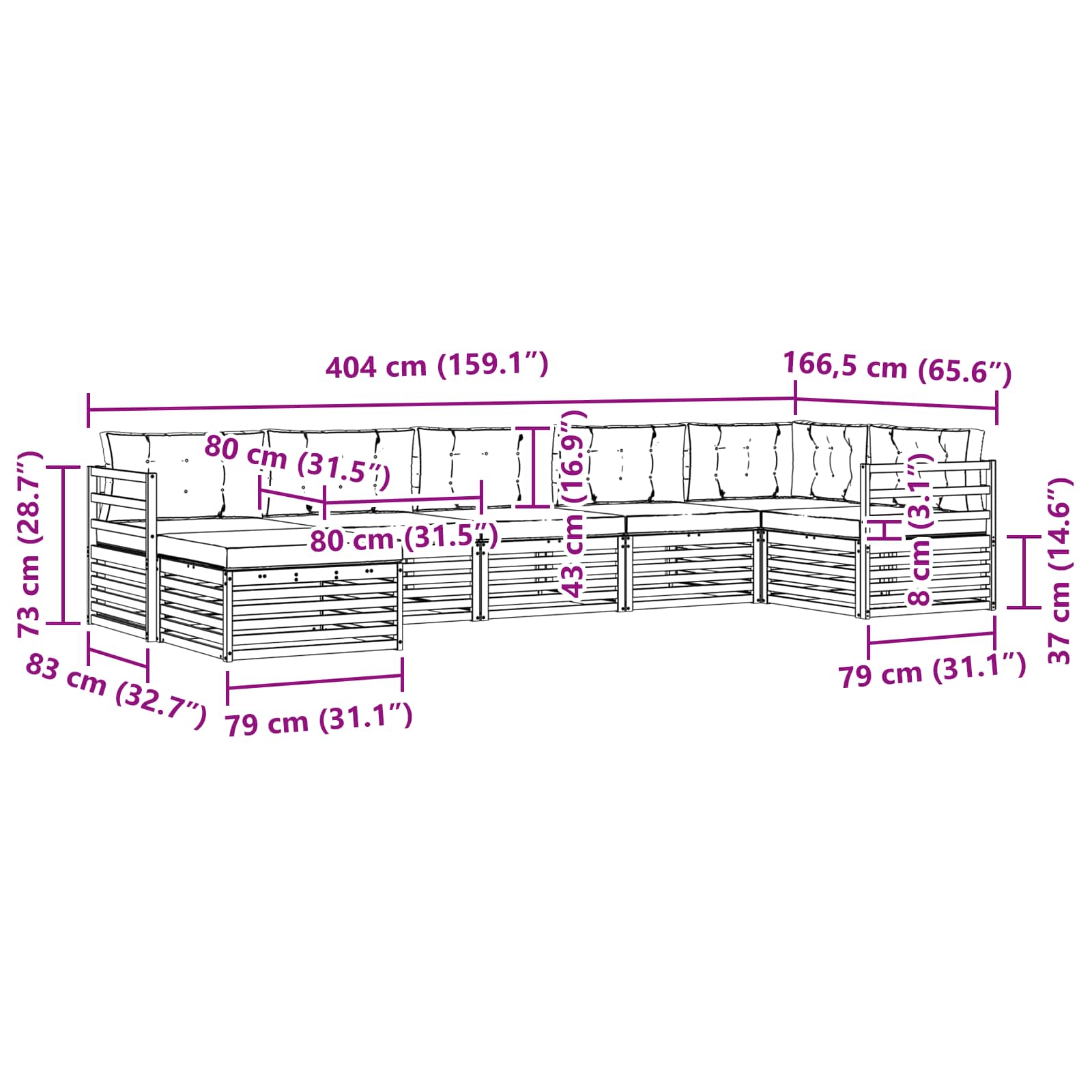 - 7 x Cuscino seduta: 80 x 80 x 8 cm (L x P x A)