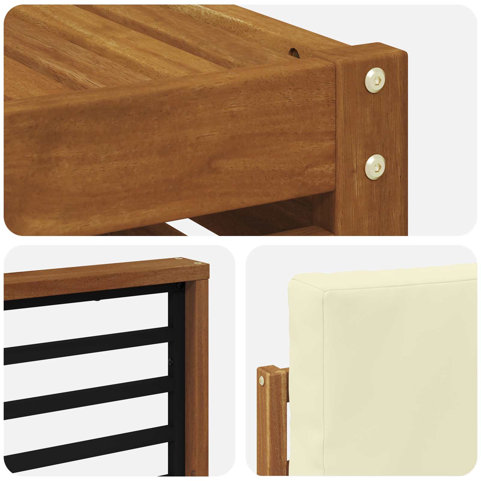- Componenti Inclusi: Dotato di braccioli e sedili in legno massello di acacia, offre un comfort extra mentre assicura una solida struttura di supporto. Ogni parte si integra bene nel design, garantendo un'esperienza di seduta ergonomica.