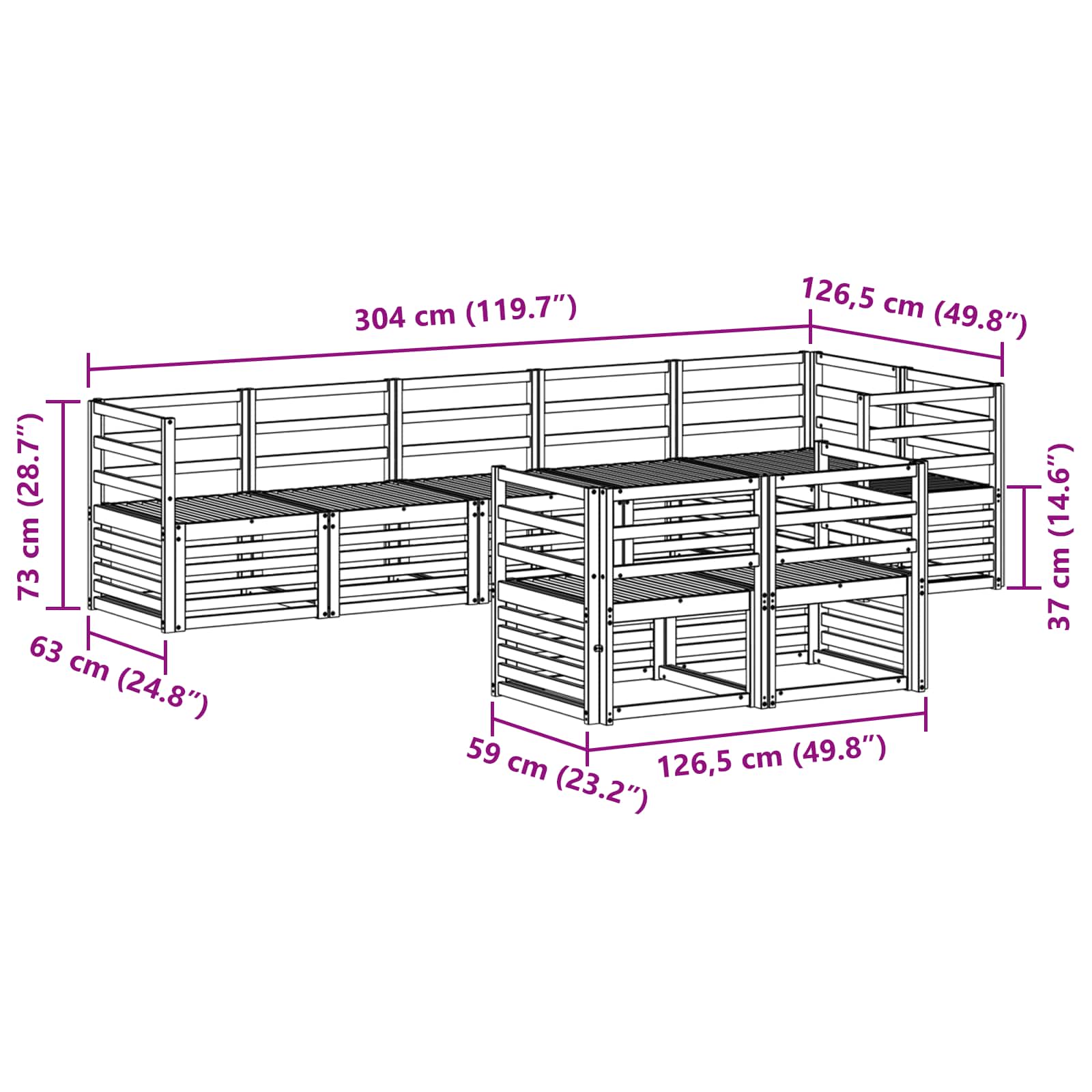 - 7 x Divano centrale: 63 x 59 x 73 cm (LxPxA)