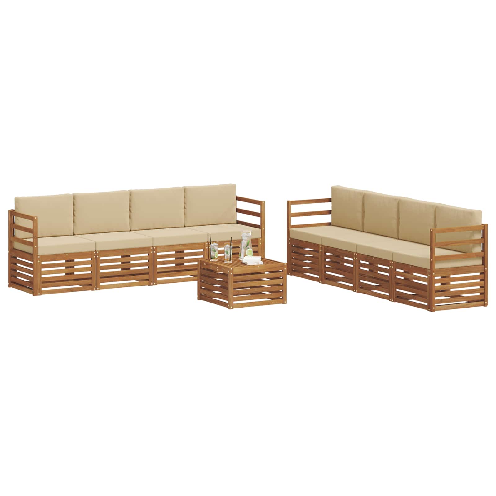 Set divani 9 pcs Naturale e Beige Legno di Acacia Massello 3374553