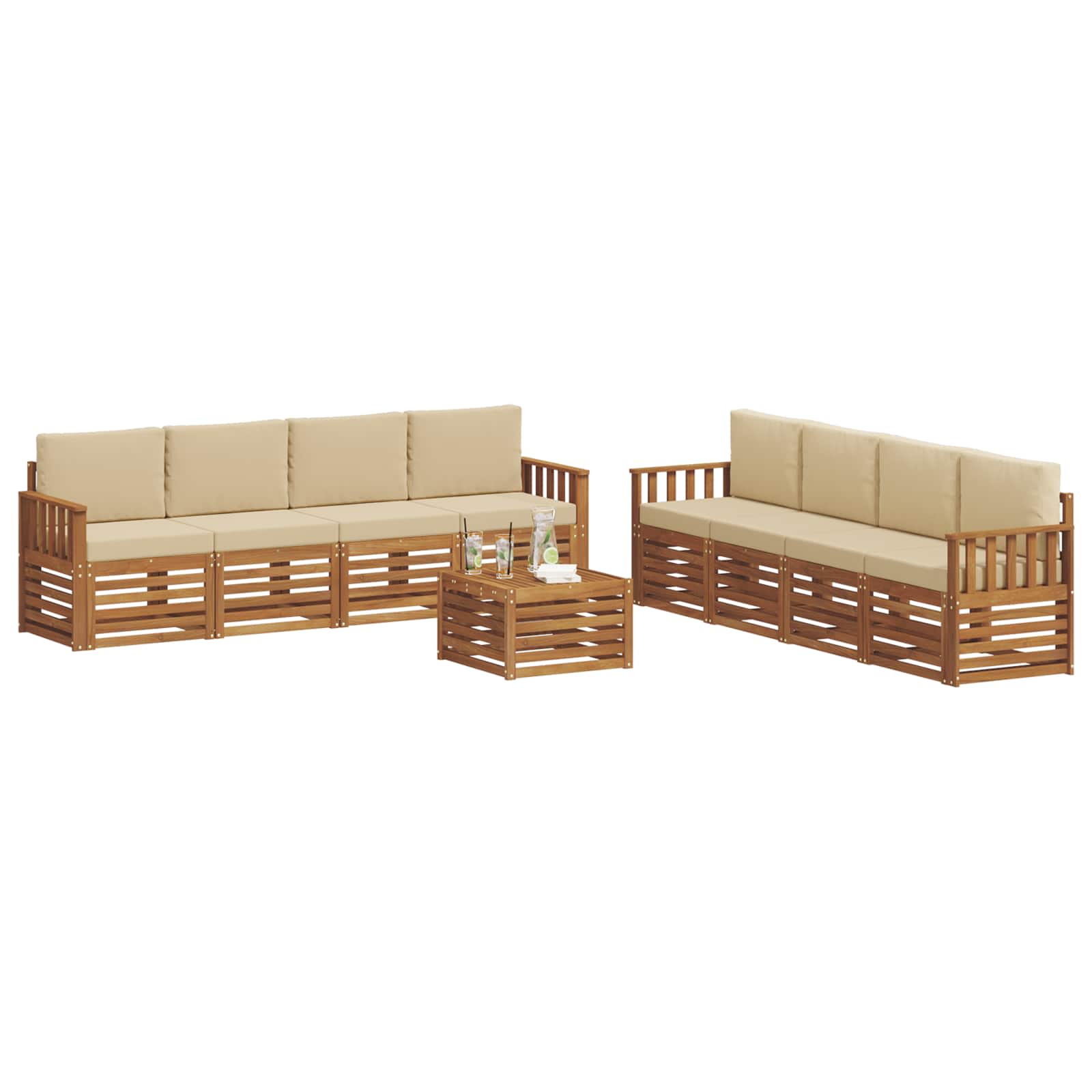Set divani 9 pcs Naturale e Beige Legno di Acacia Massello 3374563