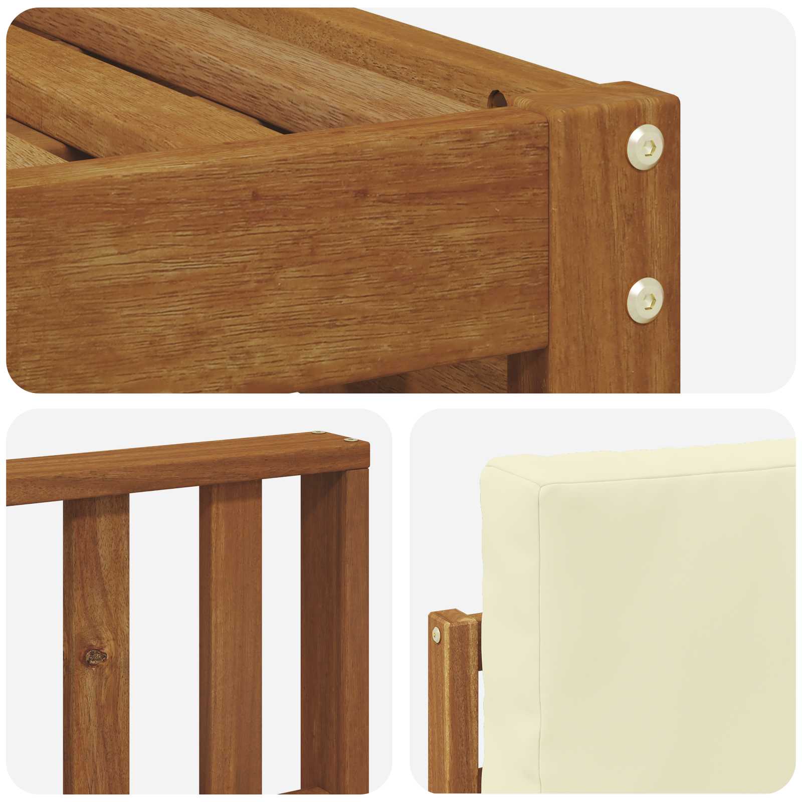 - Legno di acacia durevole: Costruito in legno massello di acacia, questo divano è fatto per durare. Il legno di acacia resiste bene all'esterno e porta un fascino senza tempo al tuo giardino o patio.