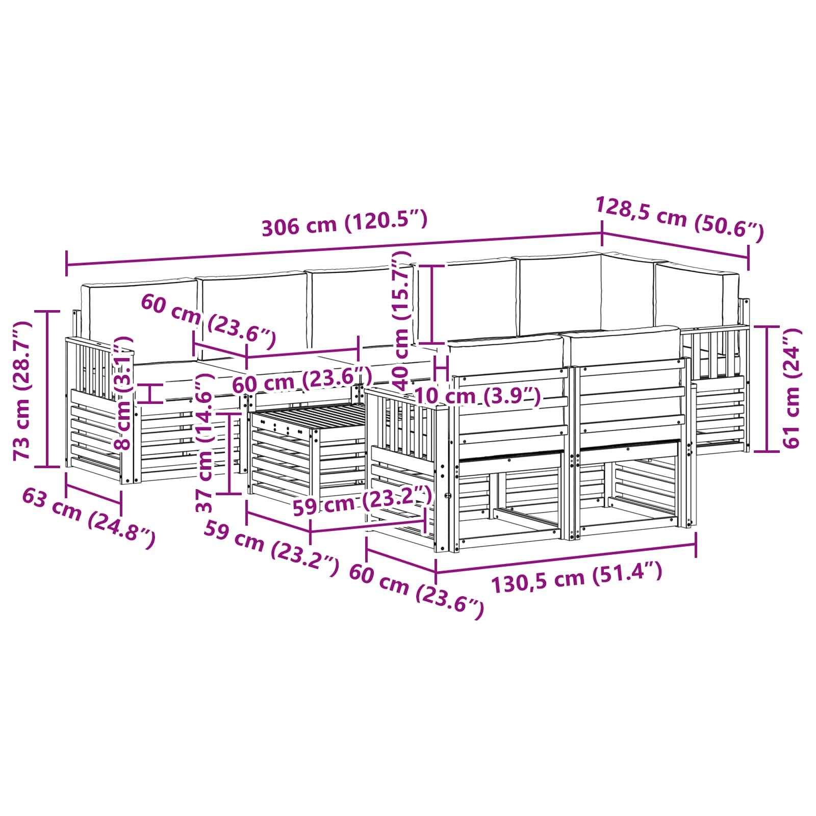 Set divani 9 pcs Naturale e Crema Legno di Acacia Massello 3375040
