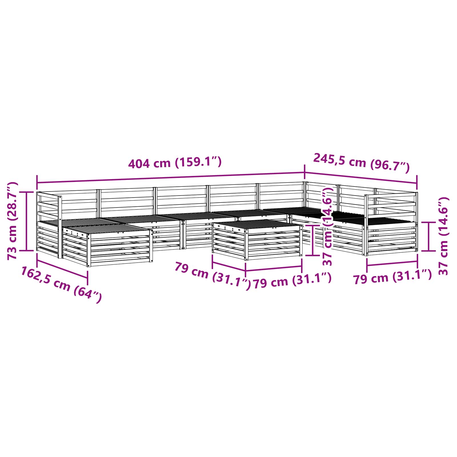 - 1 x Hocker: 79 x 79 x 37 cm (L x P x A)