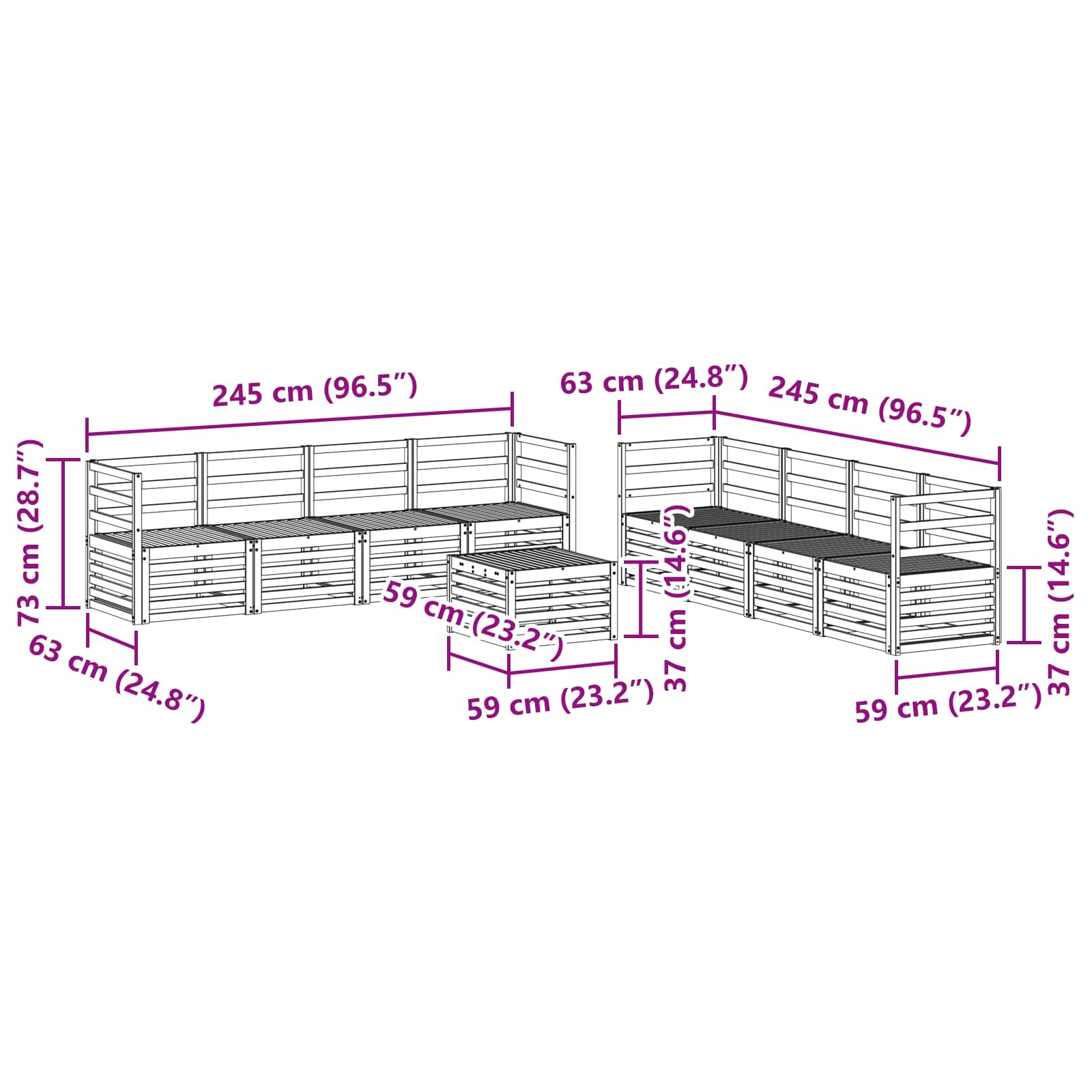 - 8 x Divano centrale: 63 x 59 x 73 cm (LxPxH)