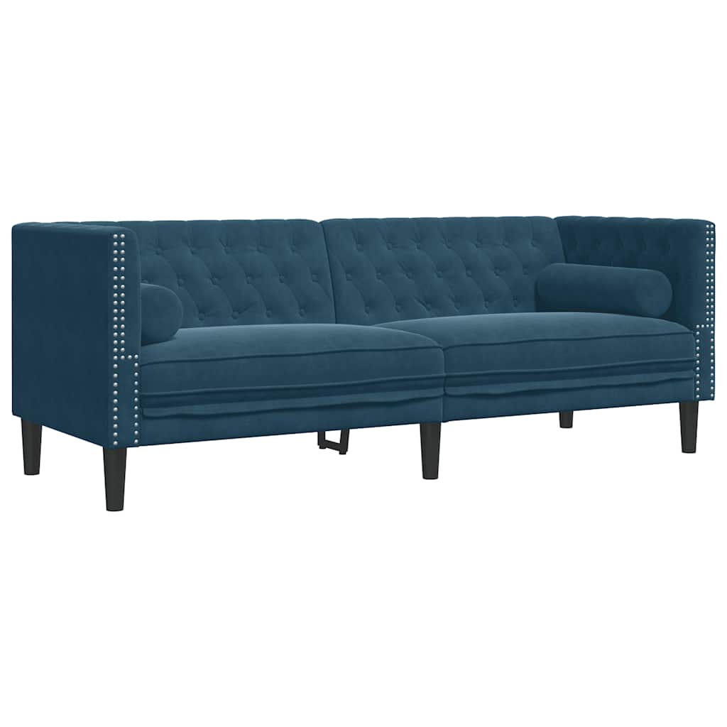 Set Divani Chesterfield 2pz con Cuscini Blu Velluto 3209299
