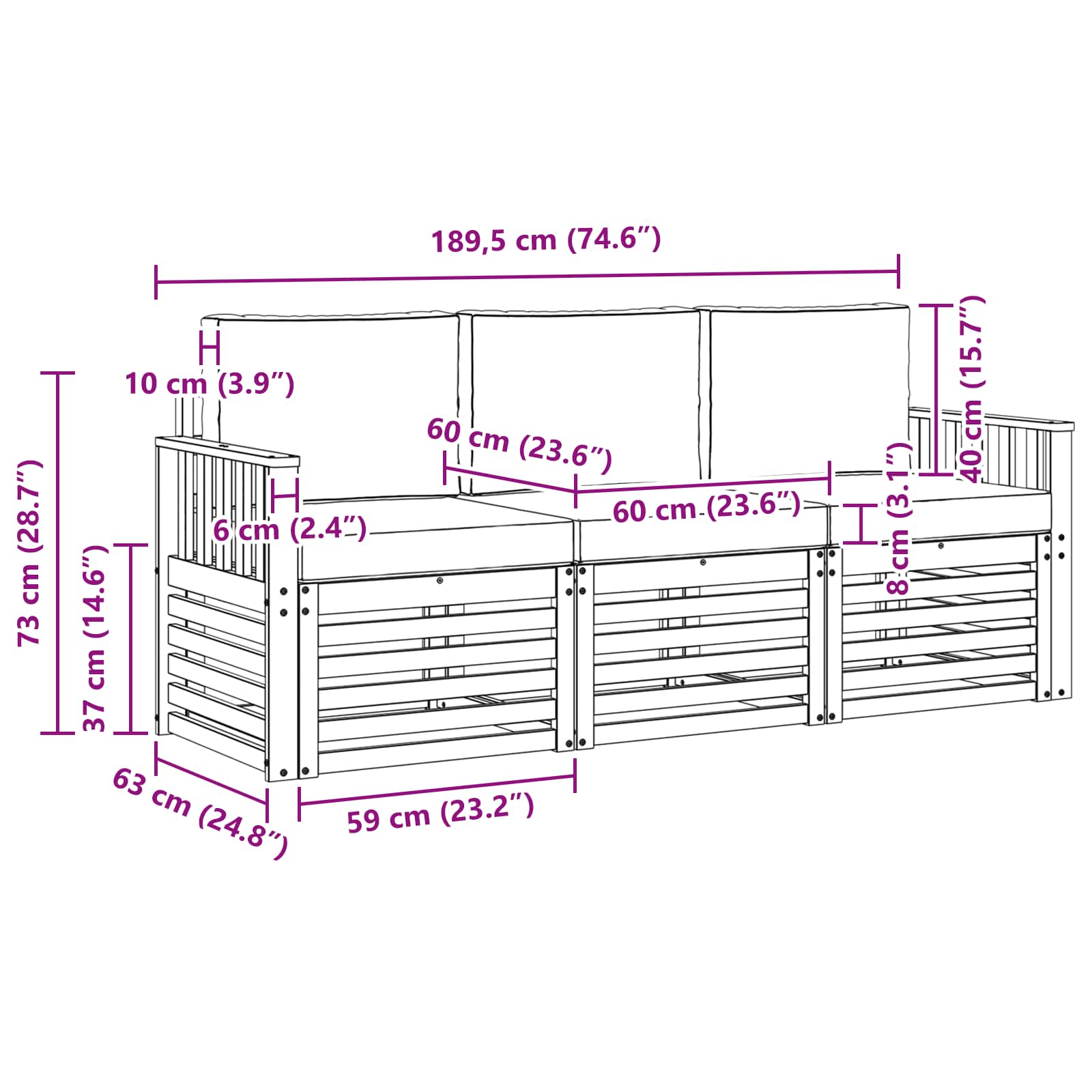 - 3 x Cuscino per seduta: 60 x 60 x 8 cm (L x P x A)