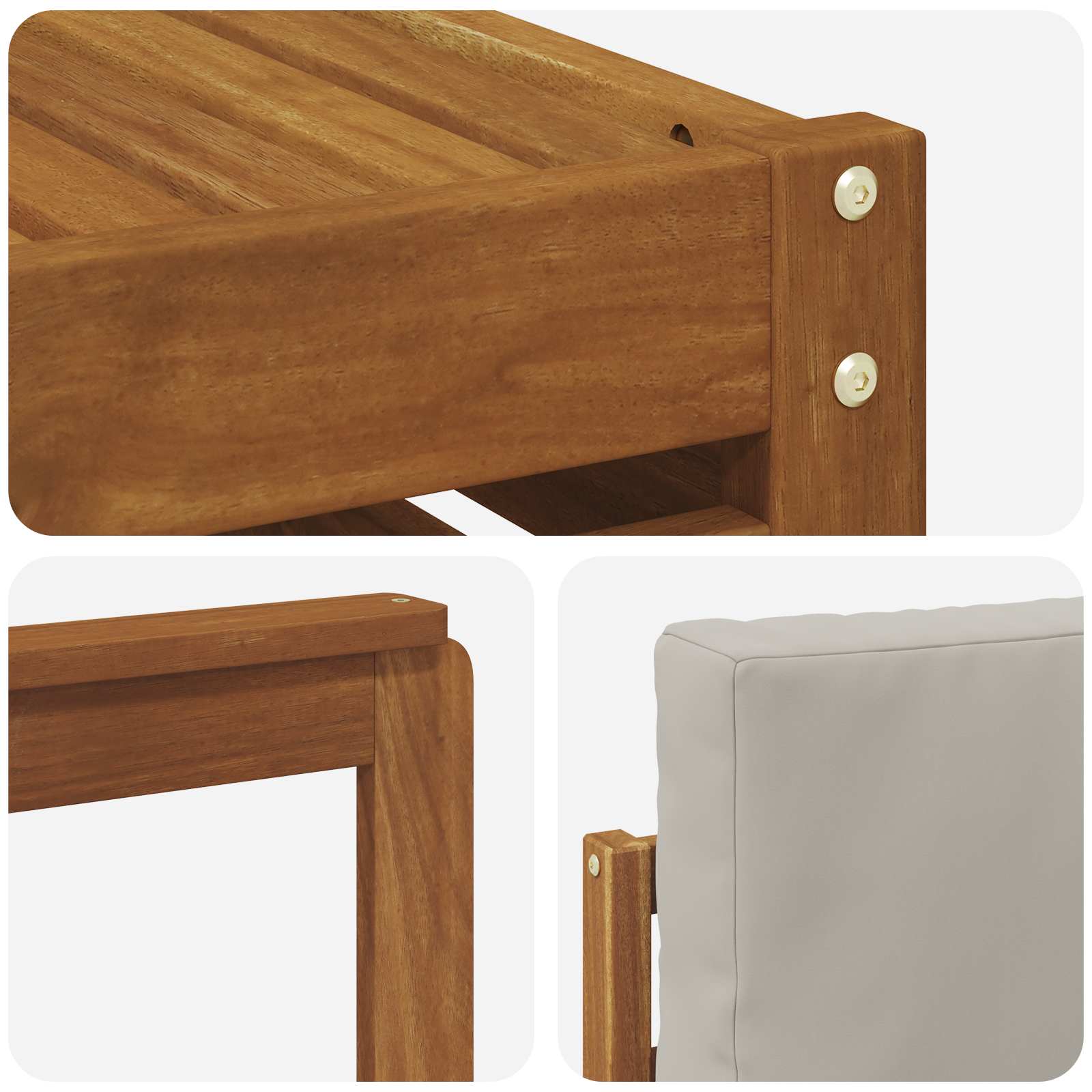 Il set di mobili da esterno unisce stile e funzionalità, diventando il punto focale perfetto per qualsiasi giardino o terrazzo. Con un design moderno caratterizzato da linee pulite e dettagli minimalisti, porta eleganza mentre favorisce il relax e le riunioni all'aperto. Completamente realizzato in legno massello di acacia, è solido e mantiene un'attrattiva estetica che dura nel tempo, una scelta ideale per chi cerca praticità e design nei mobili da esterno.