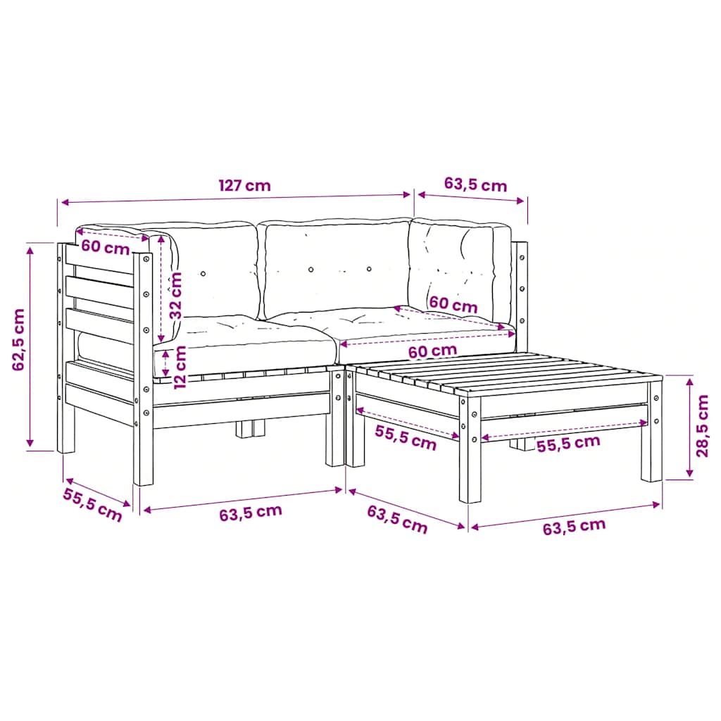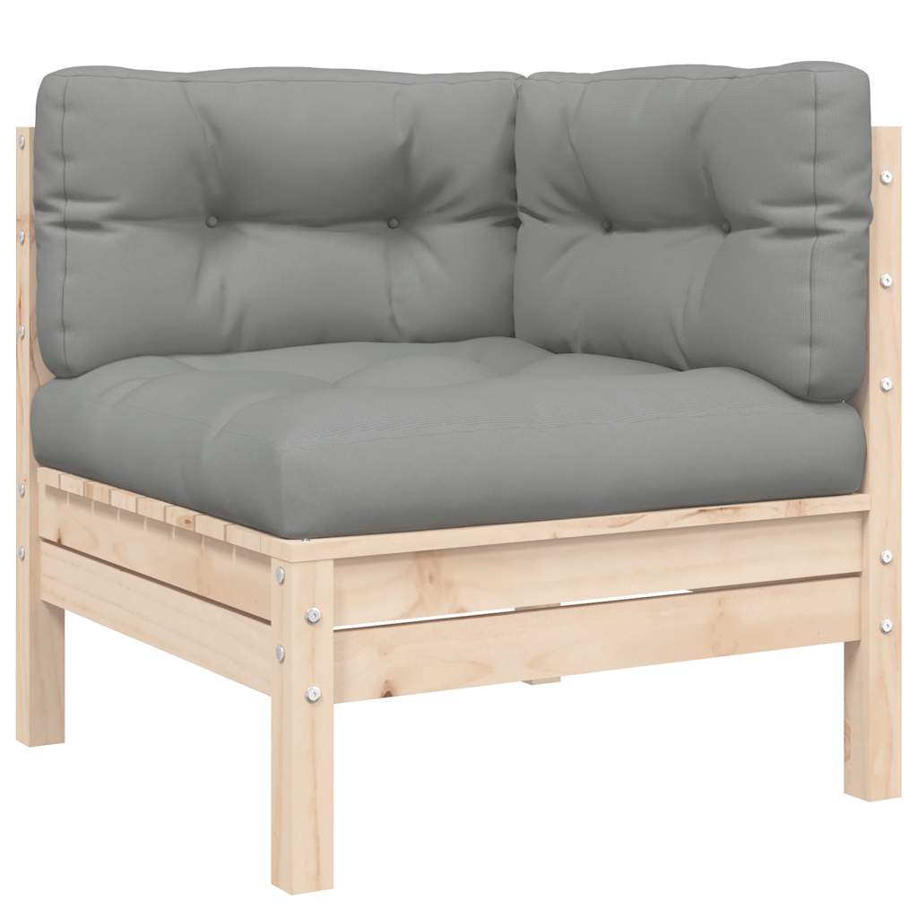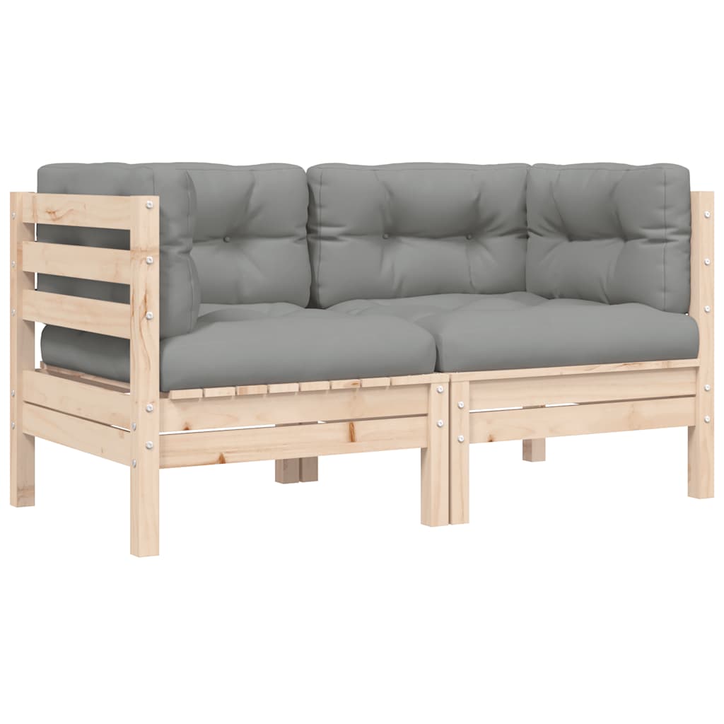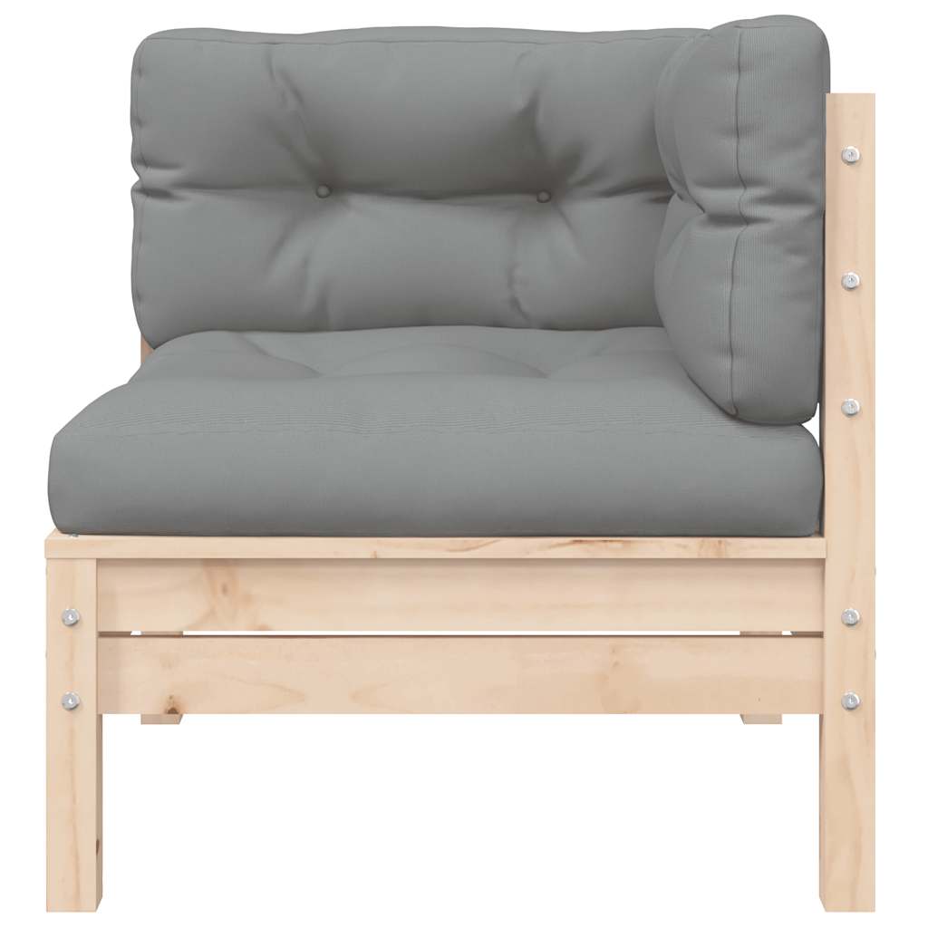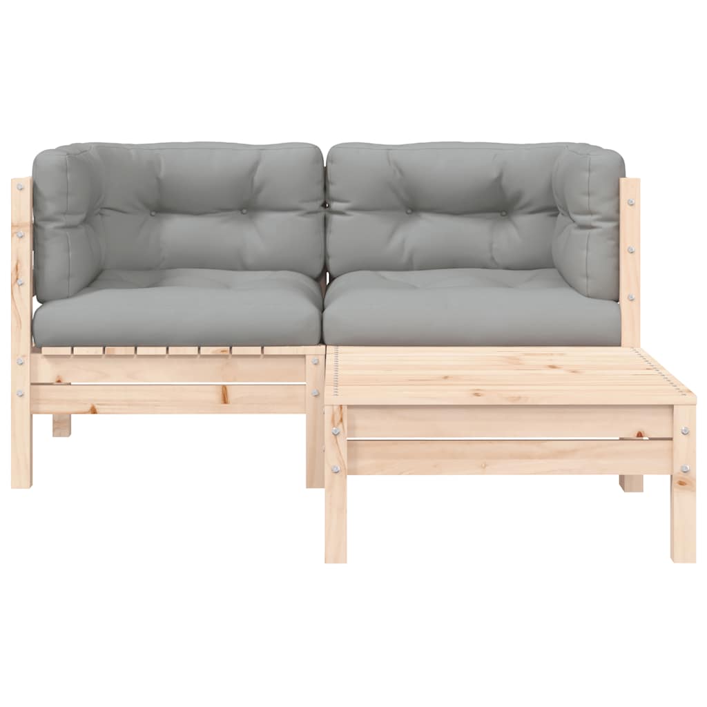 Set Divani da Giardino 3 pz con Cuscini Grigi Massello di Pino 806675