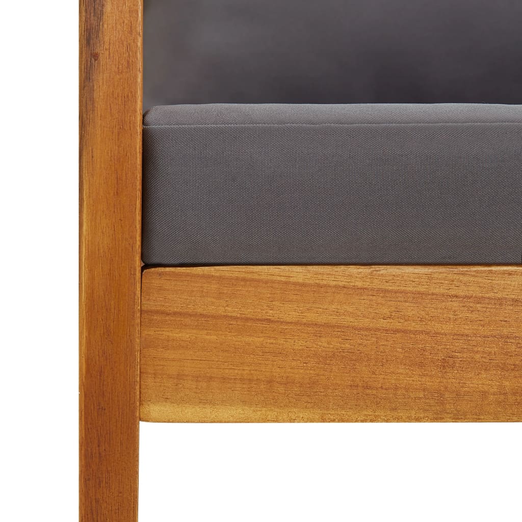 Il set di mobili da giardino è realizzato in legno massello di acacia con finitura a olio, che lo rende stabile e durevole. Gli spessi cuscini di seduta e schienale rendono il set morbido da sedere. Grazie al tavolo massello di legno con un design a stecche, il tavolino offre che lo spazio per mettere i vostri spuntini, cesti di frutta, oggetti decorativi, così come altri elementi essenziali. Lo schienale leggermente curvo e i braccioli aggiungono il comfort di seduta della panca e della sedia.