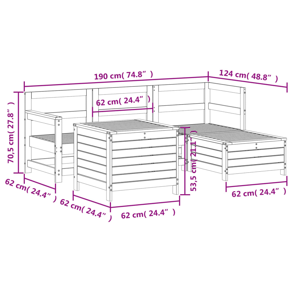 Set Divani da Giardino 5 pz in Legno Impregnato di Pino 3250495
