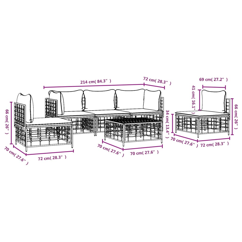 Set Divani da Giardino 6 pz con Cuscini Antracite in Polyrattan 3186719