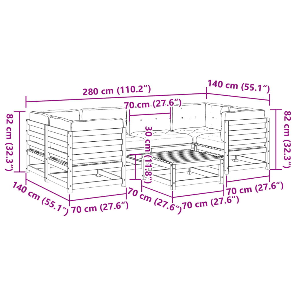 Set Divani da Giardino 7 pz con Cuscini Legno Massello di Pino 3299312