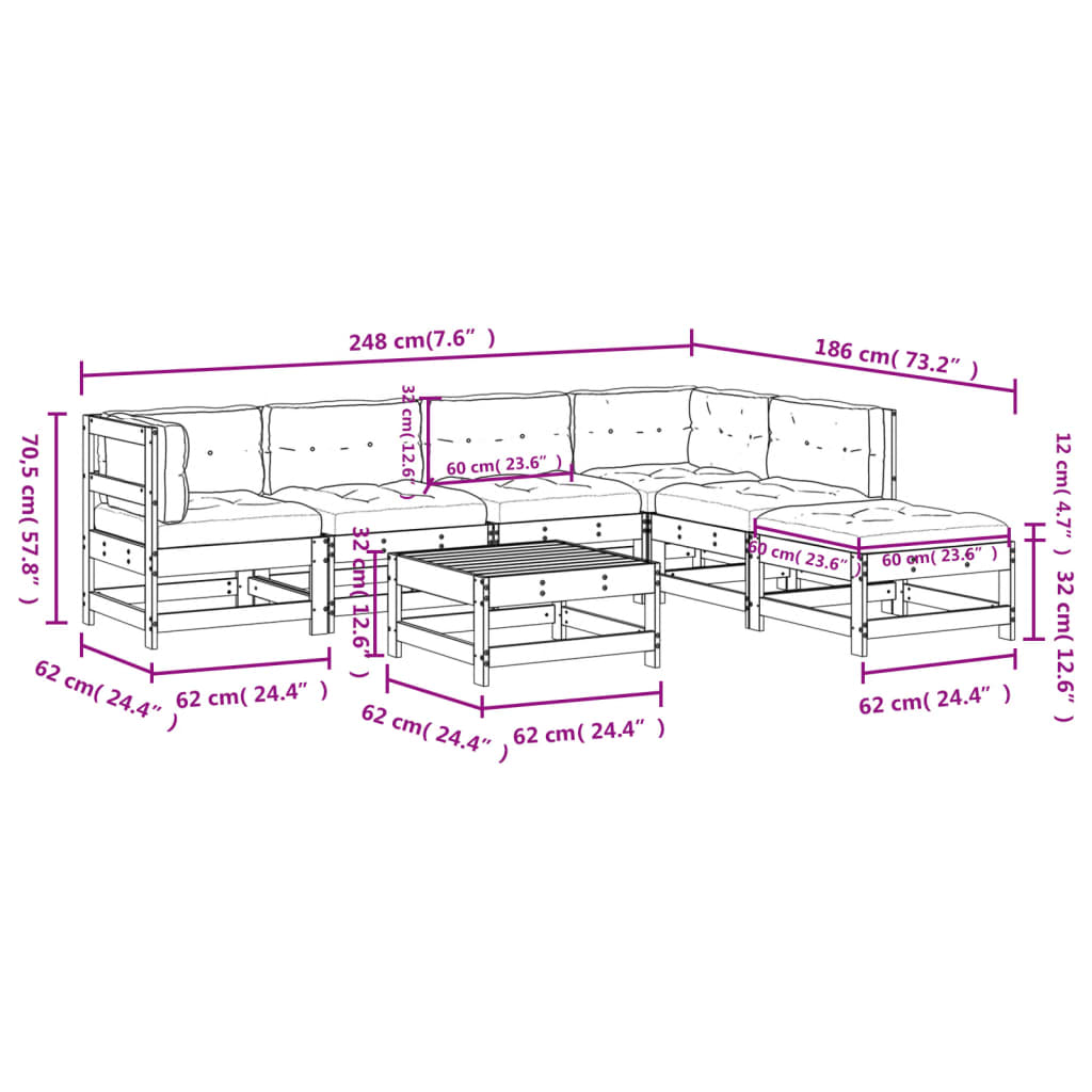 Set Divani da Giardino 7pz con Cuscini Legno Impregnato di Pino 3185968