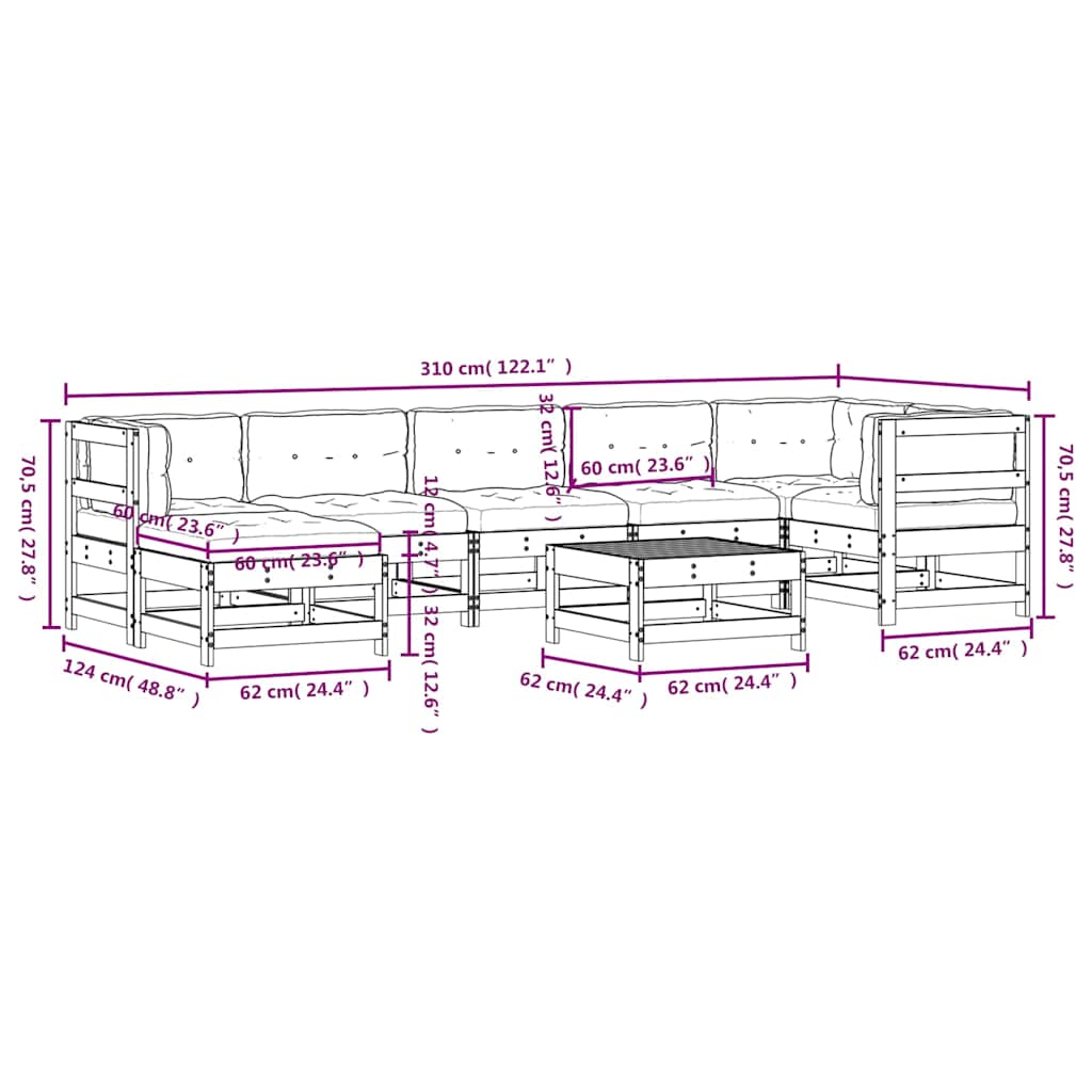 Set Divani da Giardino 8 pz con Cuscini in Legno Massello Nero 3185875