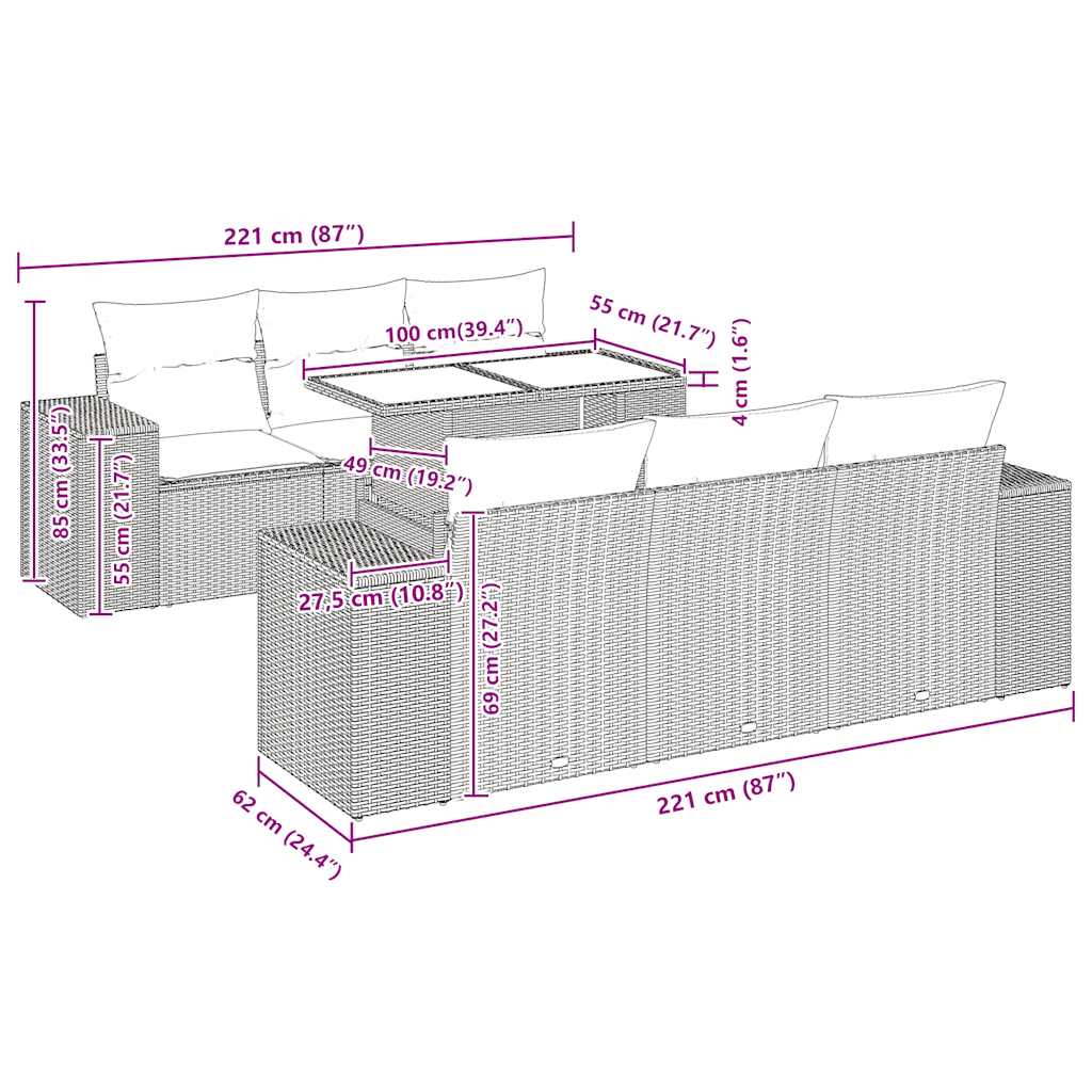 Set Divani da Giardino con Cuscini 7pz Nero Polyrattan Acacia 3326738