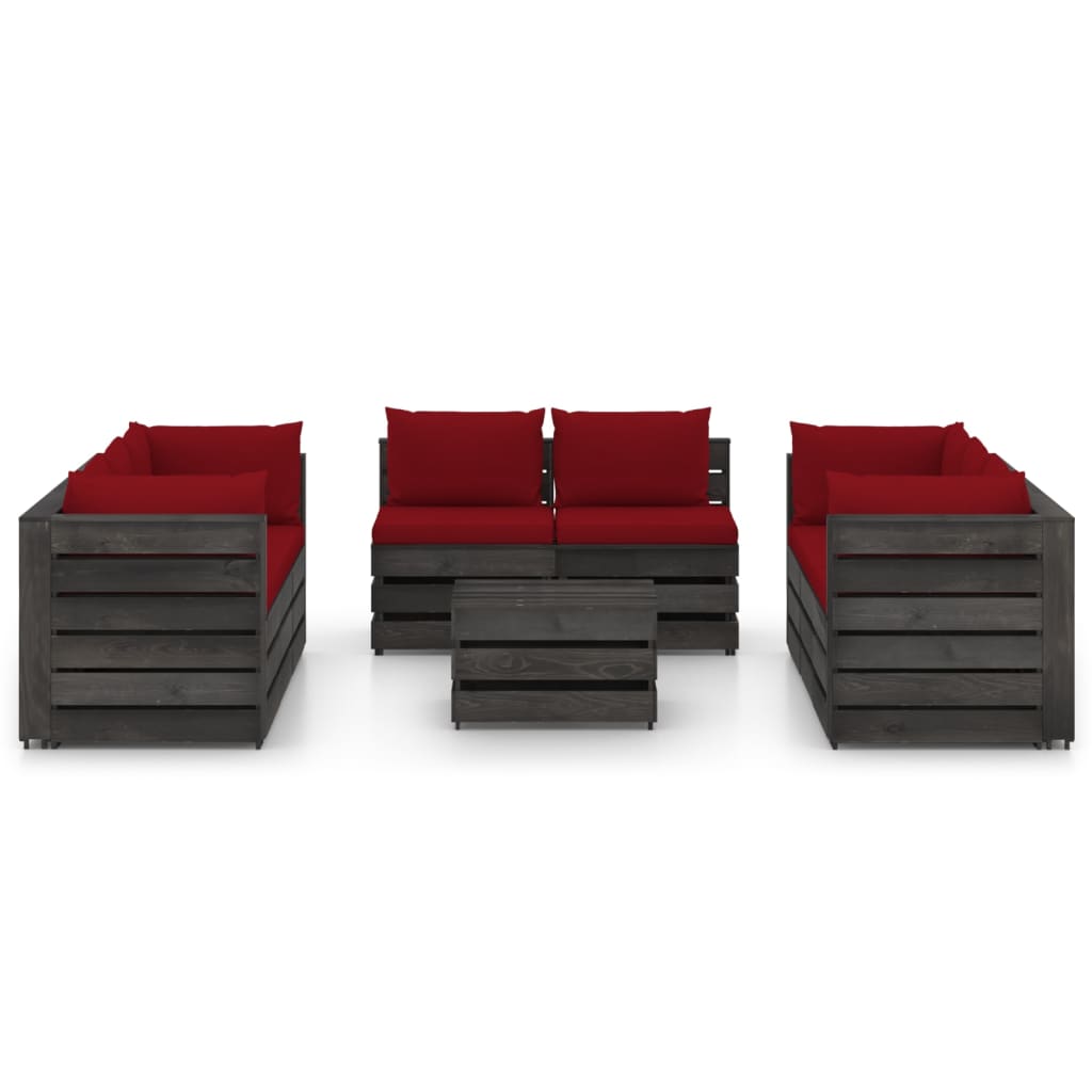 Set Divani da Giardino con Cuscini 9 pz Legno Impregnato Grigio 3068357