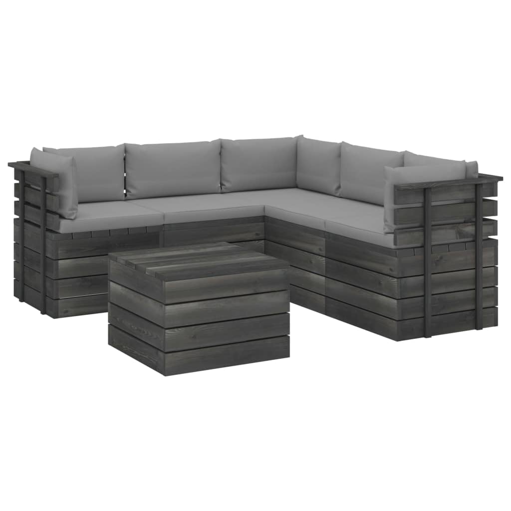 Set Divani da Giardino su Pallet 6 pz con Cuscini Massello Pino 3061948