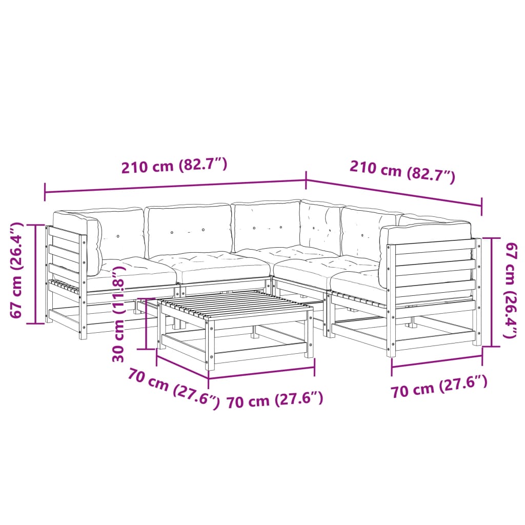 Set Divani Giardino 6 pz Cuscini Legno Massello Abete Douglas 3299447