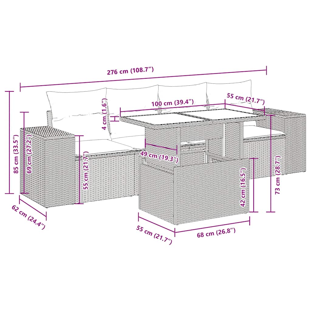 - Design modulare: Questo set di mobili da esterno ha un design modulare che lo rende completamente flessibile e facile da spostare, in modo da poter creare una disposizione personalizzata dei mobili da esterno.