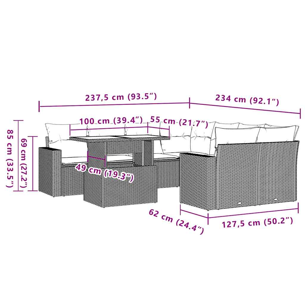Set Divano da Giardino 9 pz con Cuscini Beige in Polyrattan 3267168