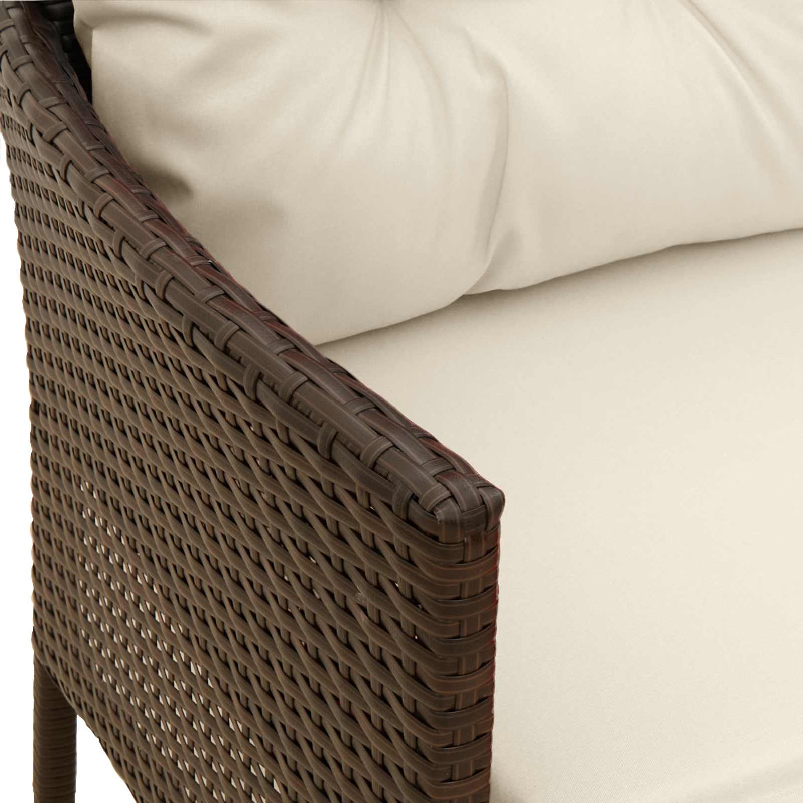 - Polyrattan robusto: Questo set pone al centro il rattan PE, noto per resistere a condizioni climatiche difficili, inclusi raggi UV e pioggia. Gli elementi in polyrattan offrono una texture bella e prestazioni superiori tutto l'anno, unendo funzionalità e appeal visivo.