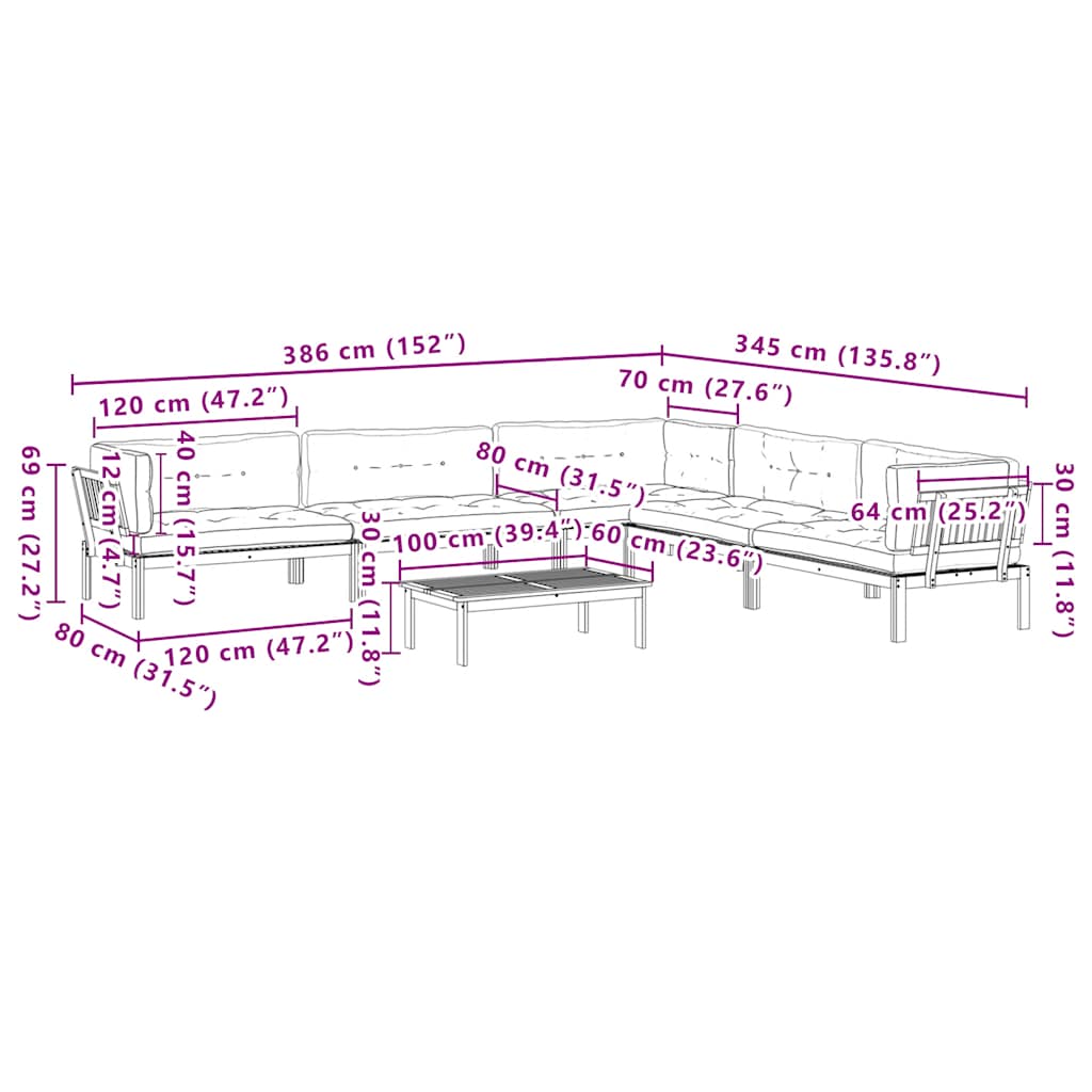 Set Divano Pallet da Giardino 6 pz con Cuscini Massello Acacia 3209415