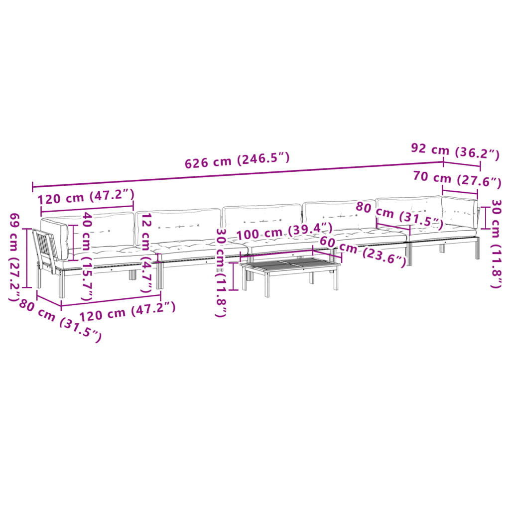 Set Divano Pallet da Giardino 6 pz con Cuscini Massello Acacia 3209530