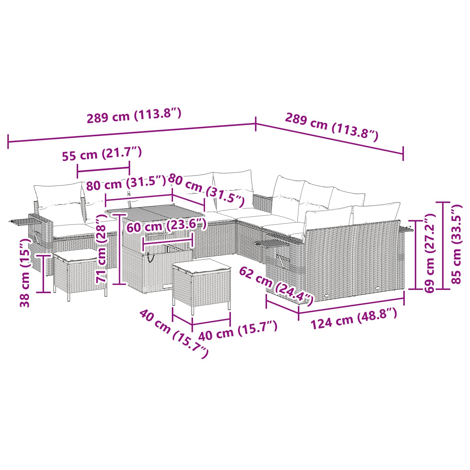 Set Divano da Giardino 13 pcs Nero polyrattan 3361799