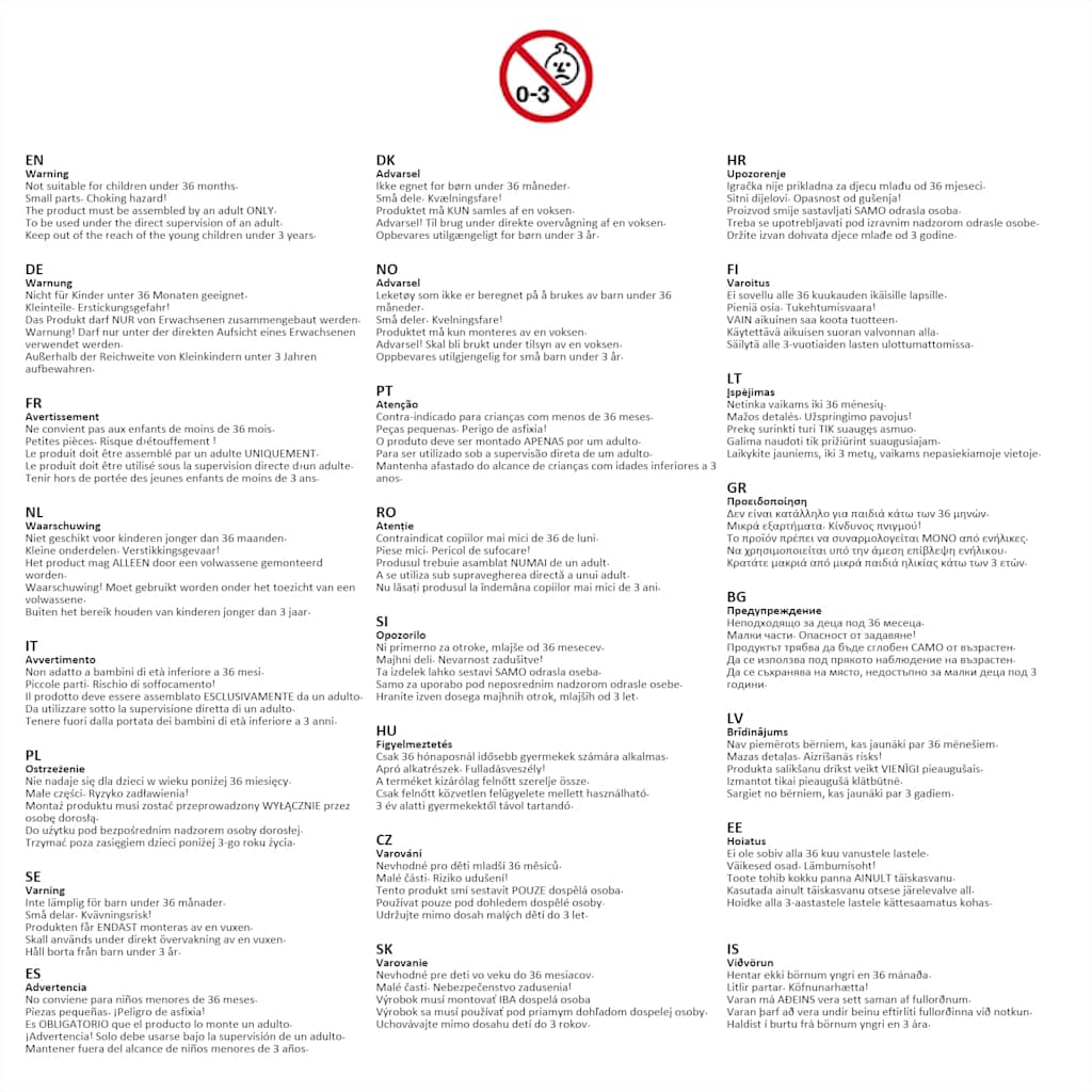 - AVVERTENZA: Non adatto per i bambini al di sotto dei 36 mesi.