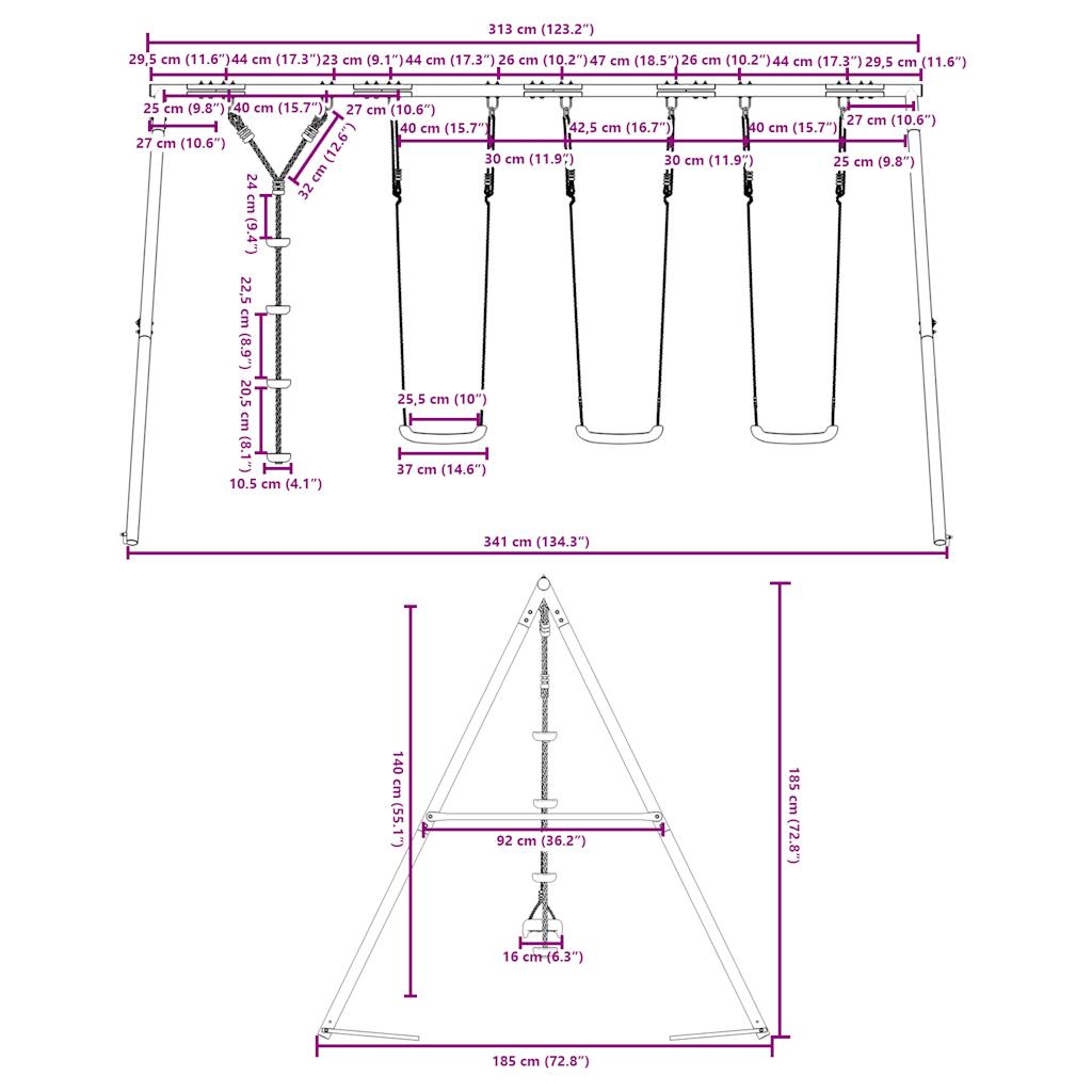 - Capacità di carico massima (ogni altalena): 50 kg