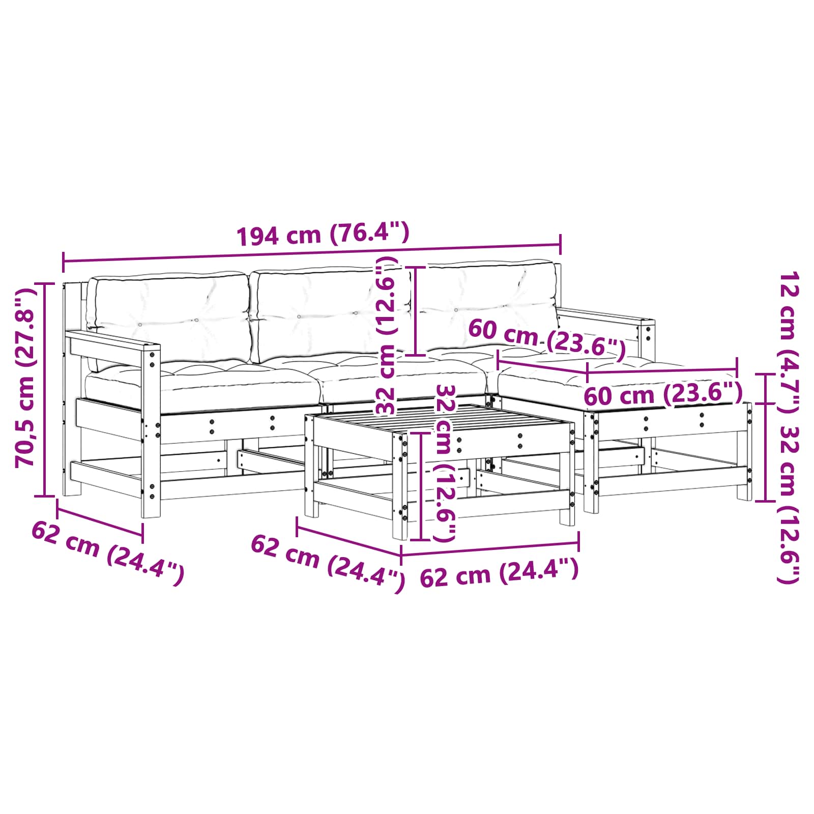 Set Lounge da Giardino 5 pcs Pino Marrone Cerato 3418131