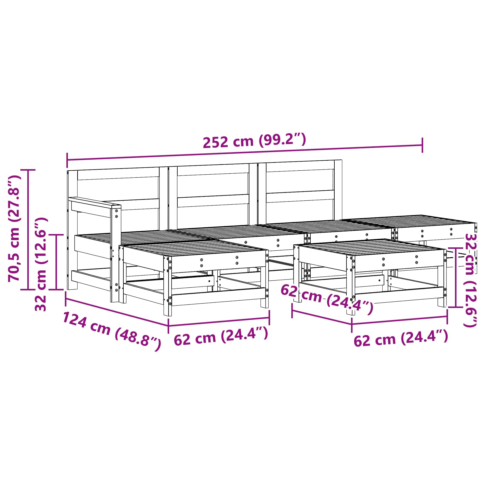 Questo set di lounge modulare è quello che ti serve per il tuo terrazzo o giardino, portando comfort e stile. Fatto in legno massello di pino, ha un look elegante e sottile, con una superficie liscia che si abbina bene a qualsiasi spazio esterno moderno. Non solo rende più bello il tuo esterno, ma offre anche tanto spazio per accogliere amici e familiari. È costruito per adattarsi a diverse configurazioni, così puoi usarlo come preferisci.
